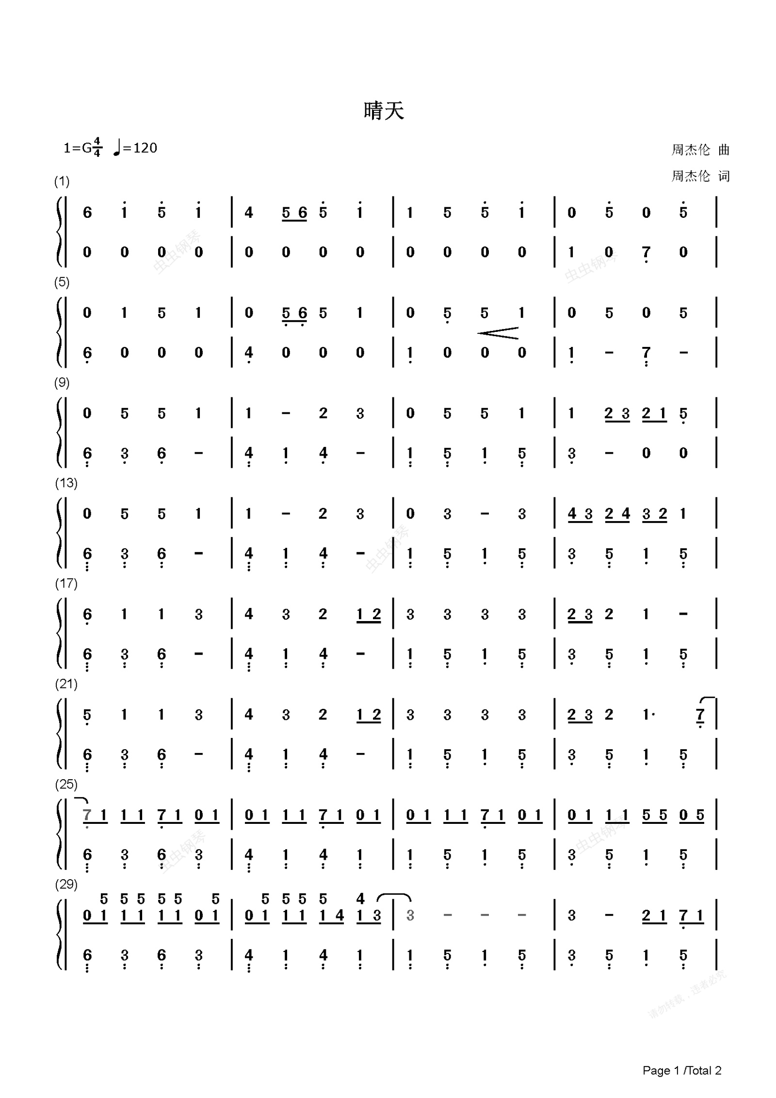 钢琴谱:《晴天》简谱版,非常简易但好听,适合新手(poc编配)