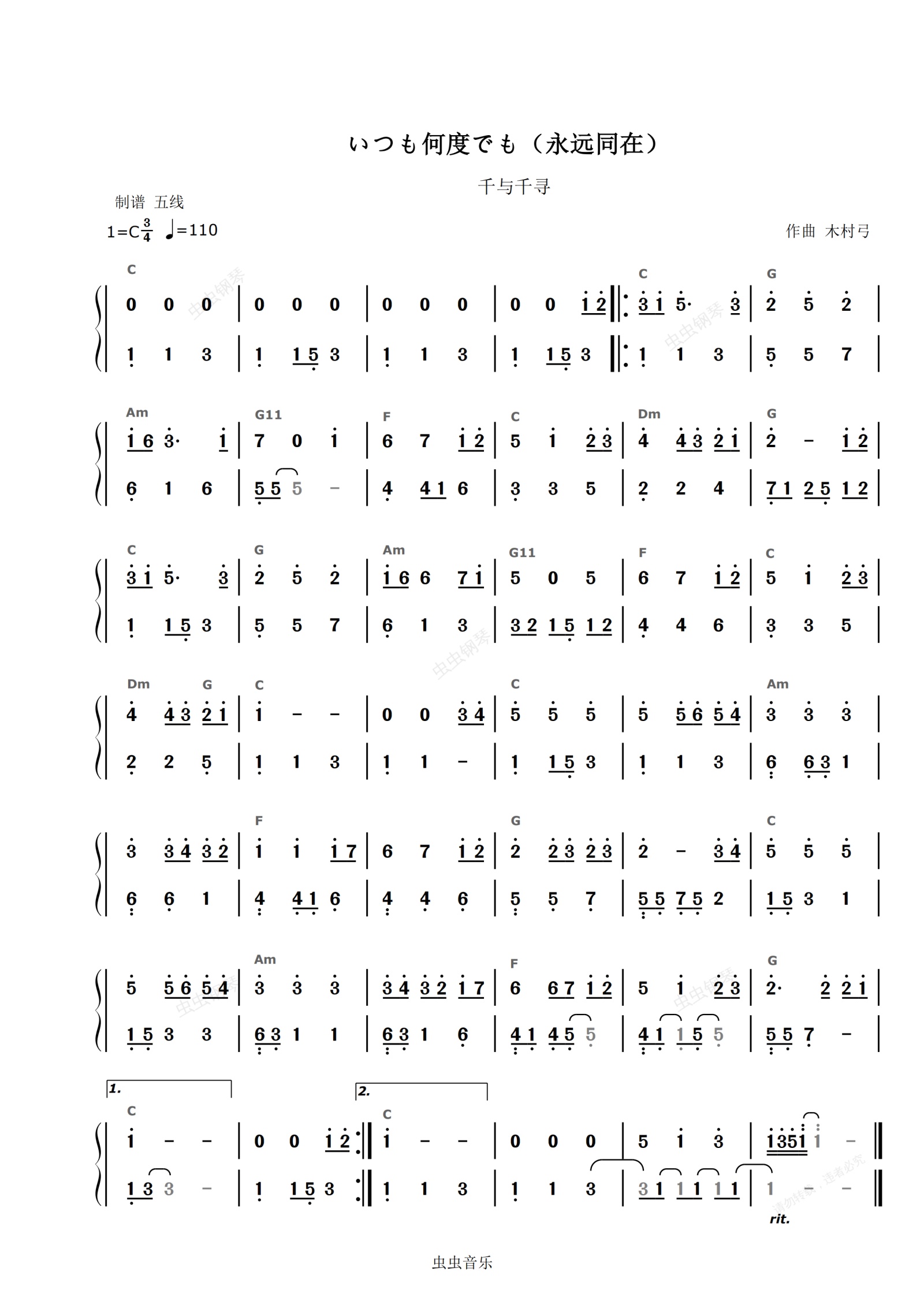 钢琴谱:いつも何度でも(永远同在)-C调简谱