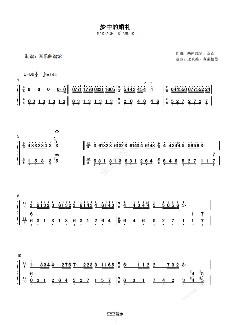 钢琴谱:梦中的婚礼【简谱】(MARIAGE D'AMOUR 理查德克莱德曼)