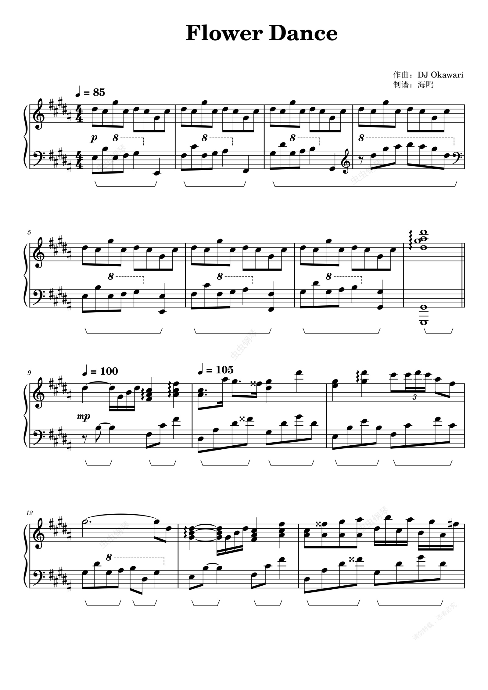 钢琴谱:Flower Dance【原版】-Dj Okawari(花之舞)
