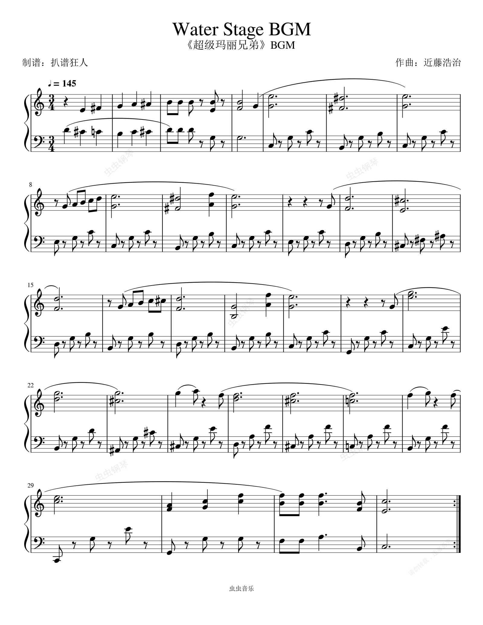 钢琴谱:超级玛丽兄弟-水下主题