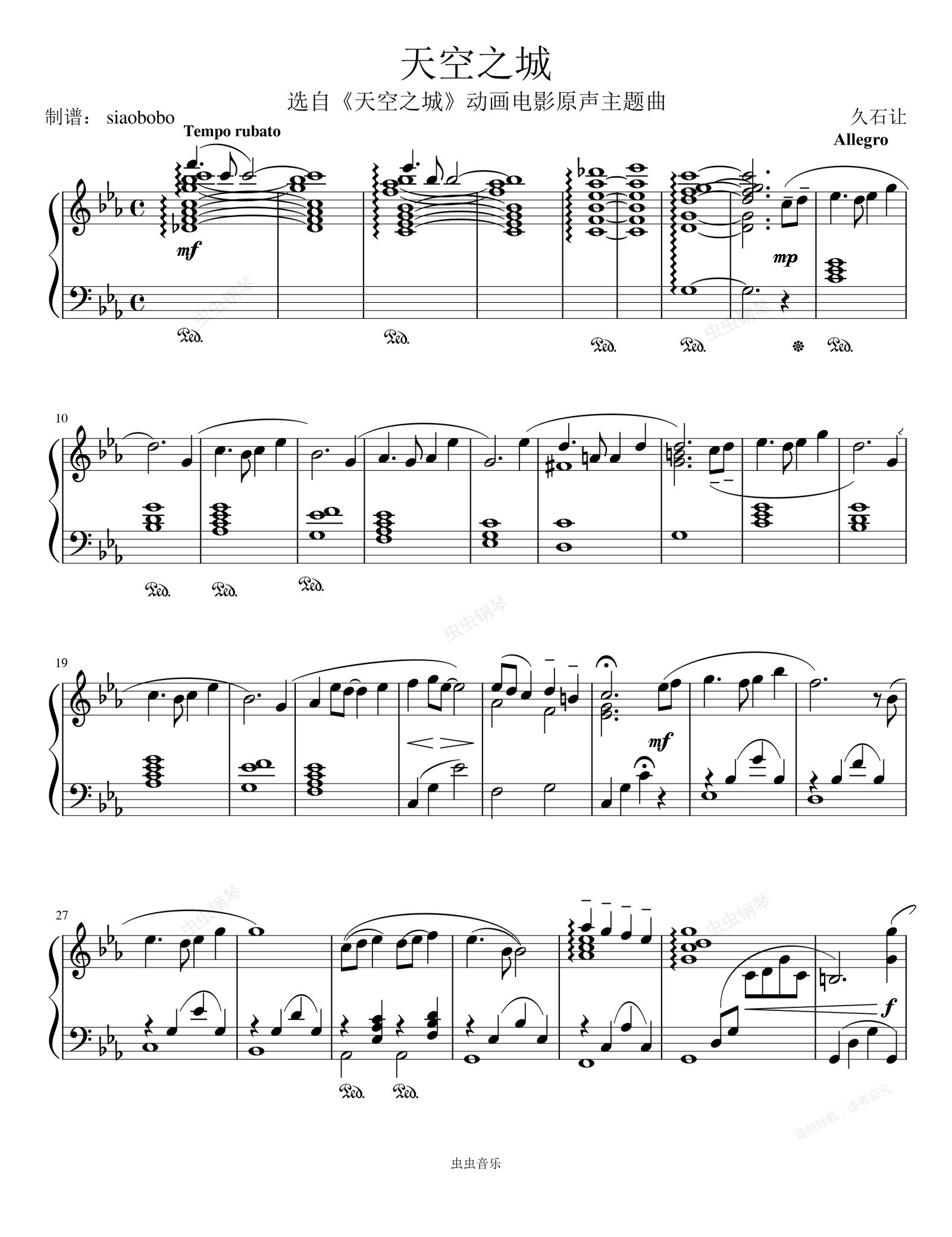 钢琴谱:天空之城——选自《天空之城》动画电影原声主题曲