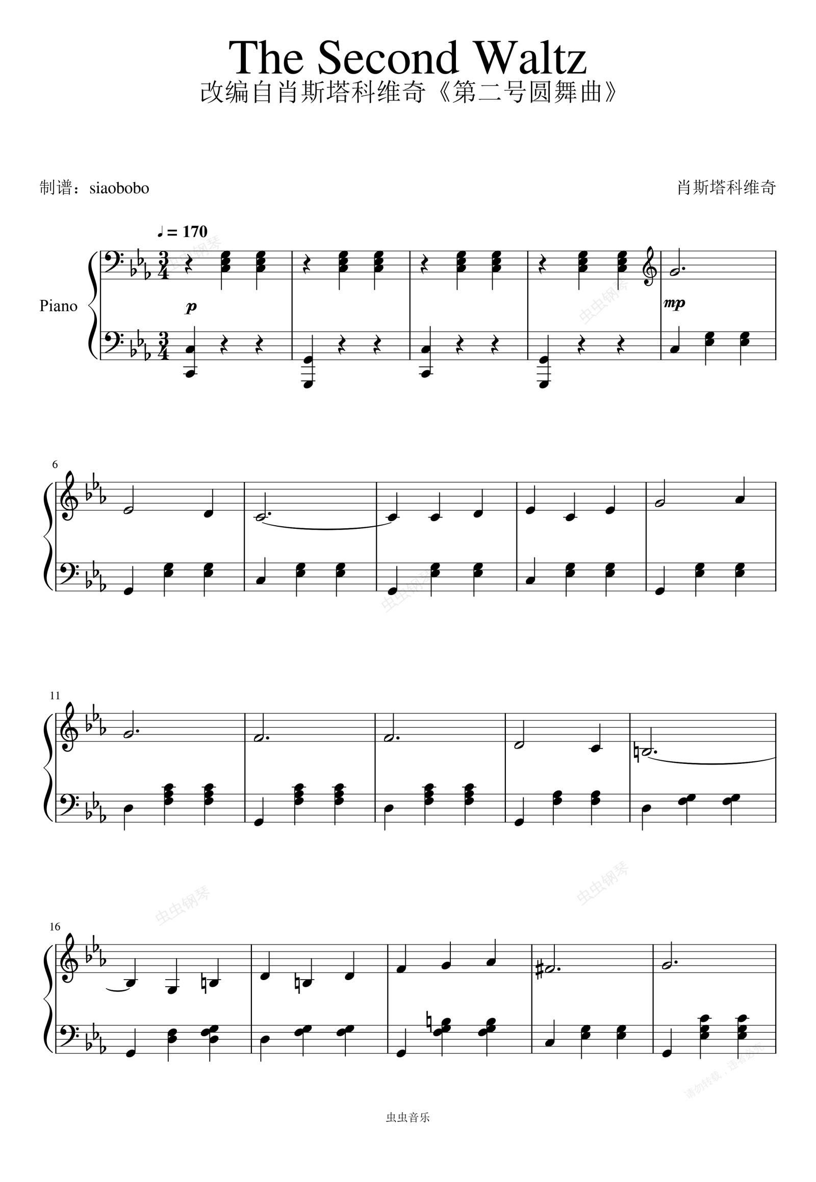 钢琴谱:The Second Waltz——改编自肖斯塔科维奇《第二号圆舞曲》