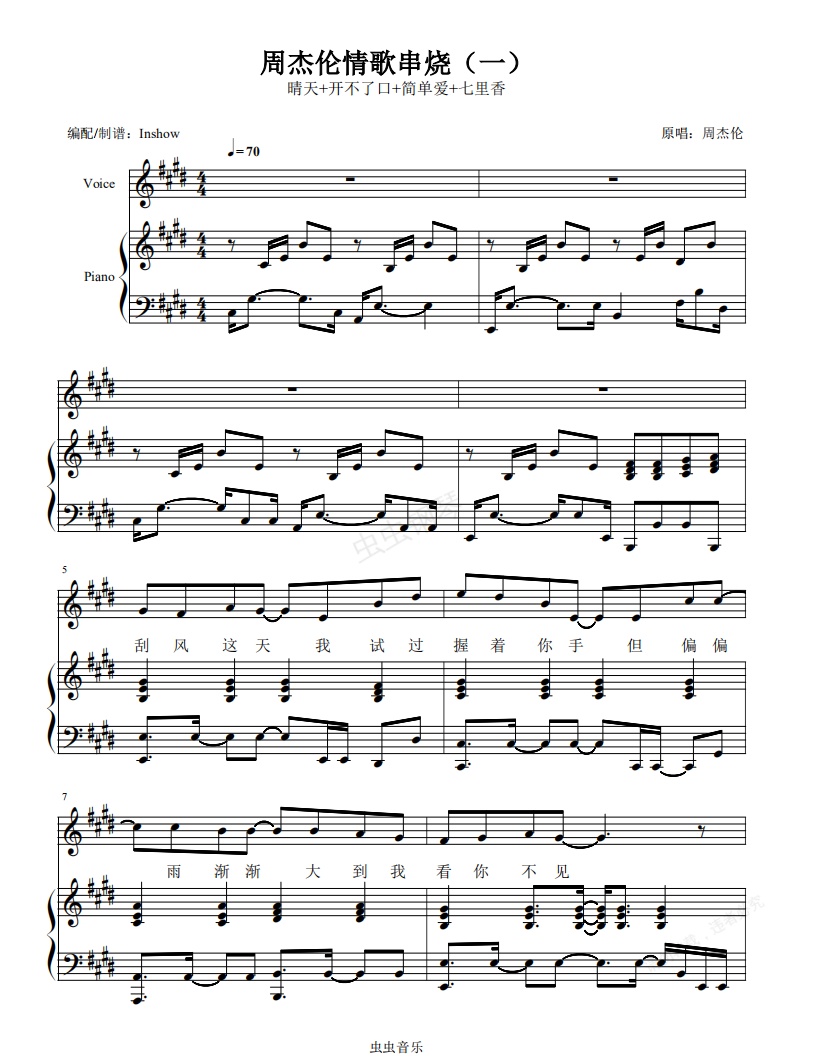 钢琴谱:周杰伦情歌串烧(一)【弹唱谱】