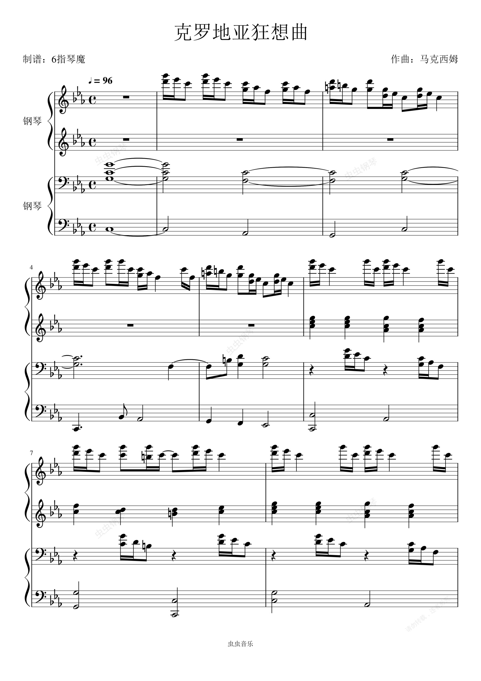 钢琴谱:克罗地亚狂想曲(四手联弹)——超级好听