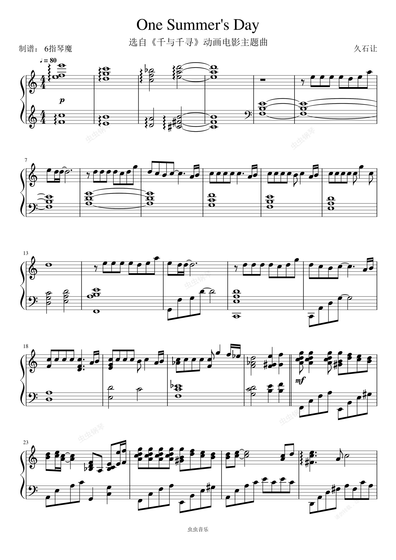 钢琴谱:One Summer's Day——选自《千与千寻》动画电影主题曲