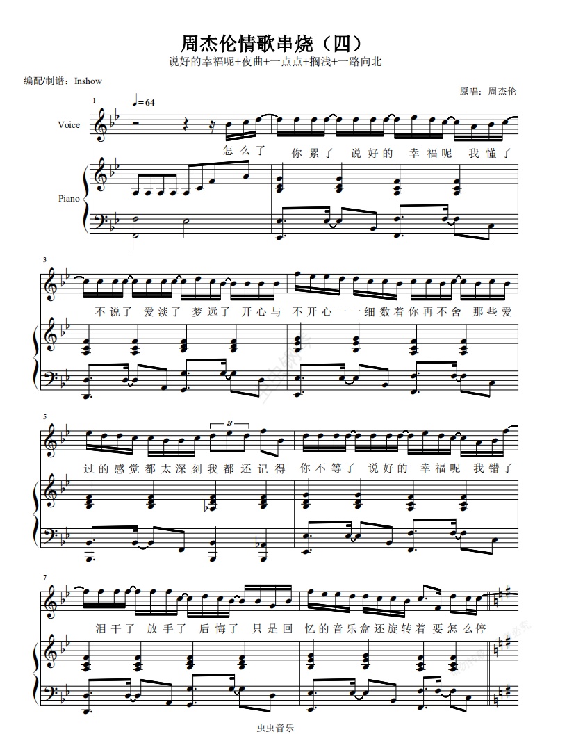 钢琴谱:周杰伦情歌串烧(四)【弹唱谱】