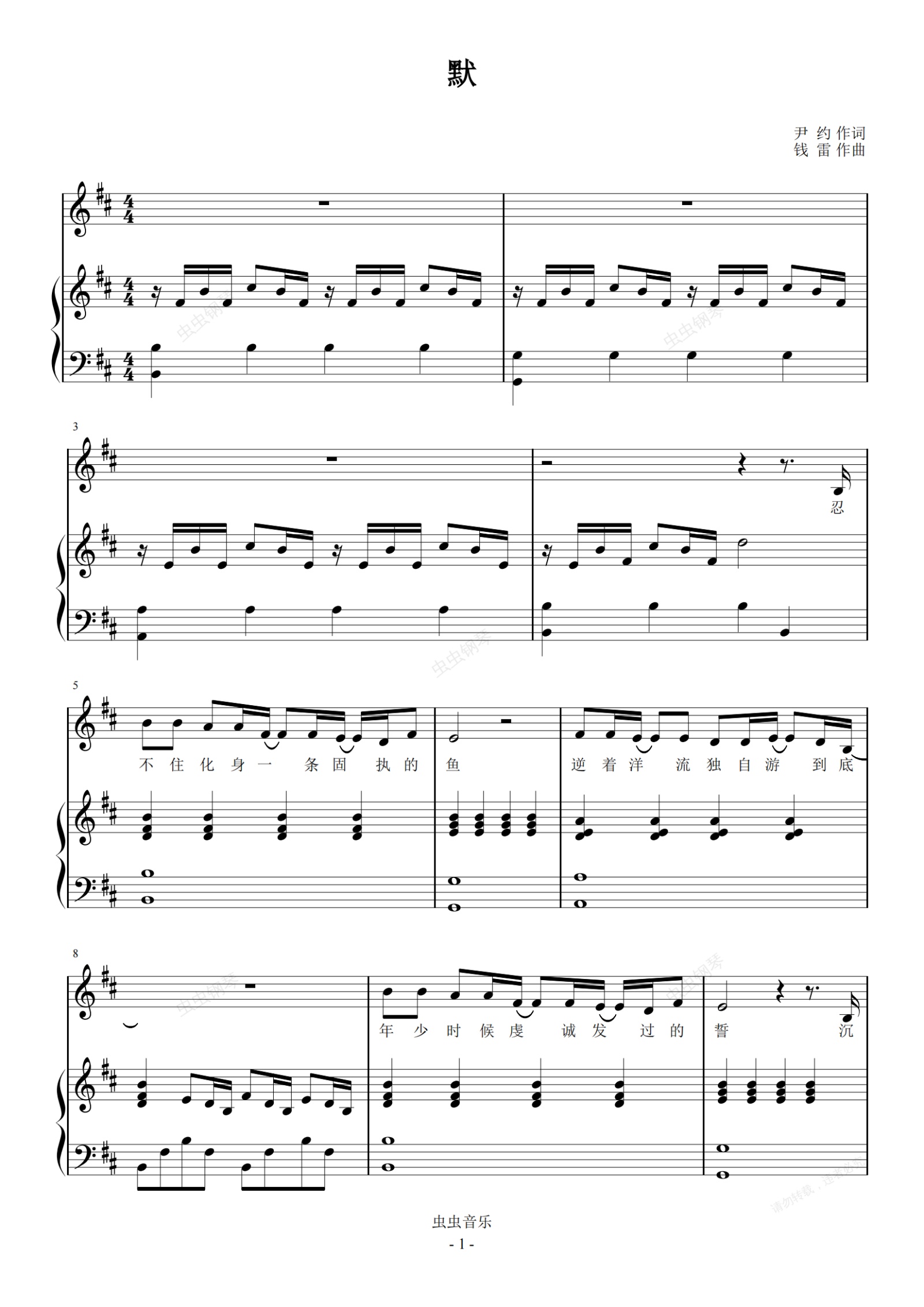 钢琴谱:周杰伦原版现场《默》钢琴弹唱