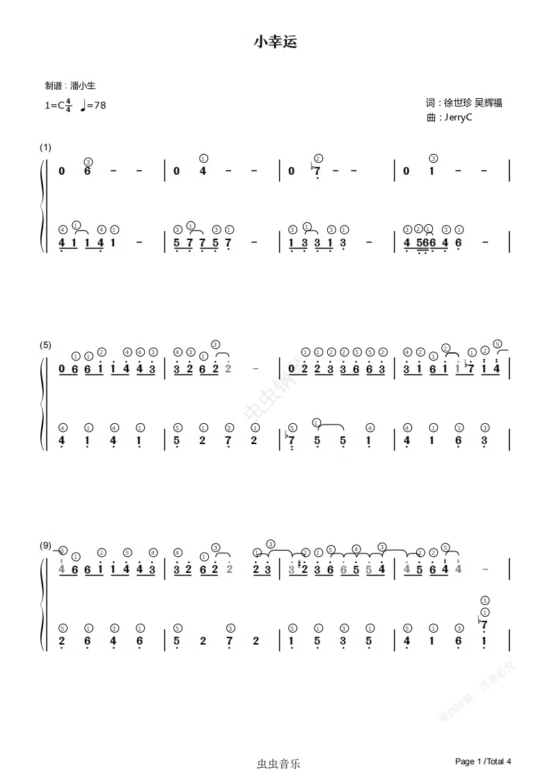 钢琴谱:[双手简谱] 小幸运 带指法 C调 简化版