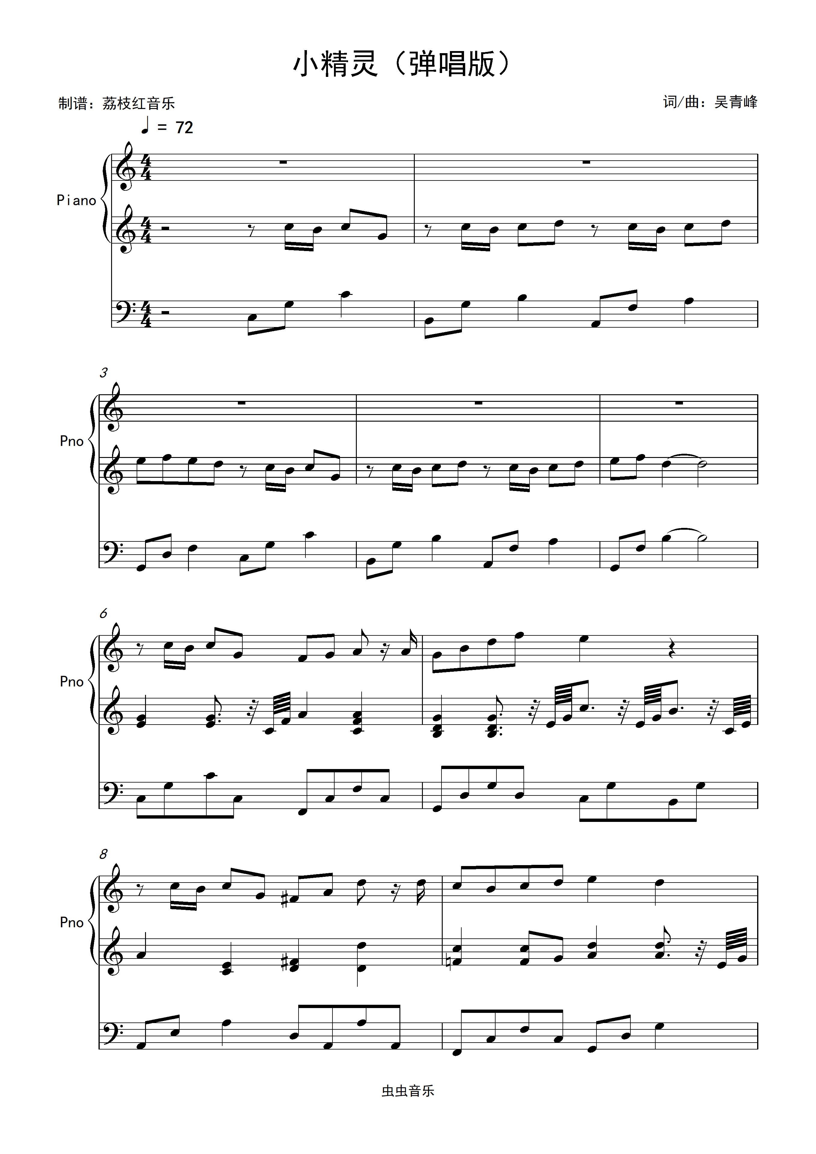 钢琴谱:好弹又好听 小精灵C调弹唱版 钢琴谱