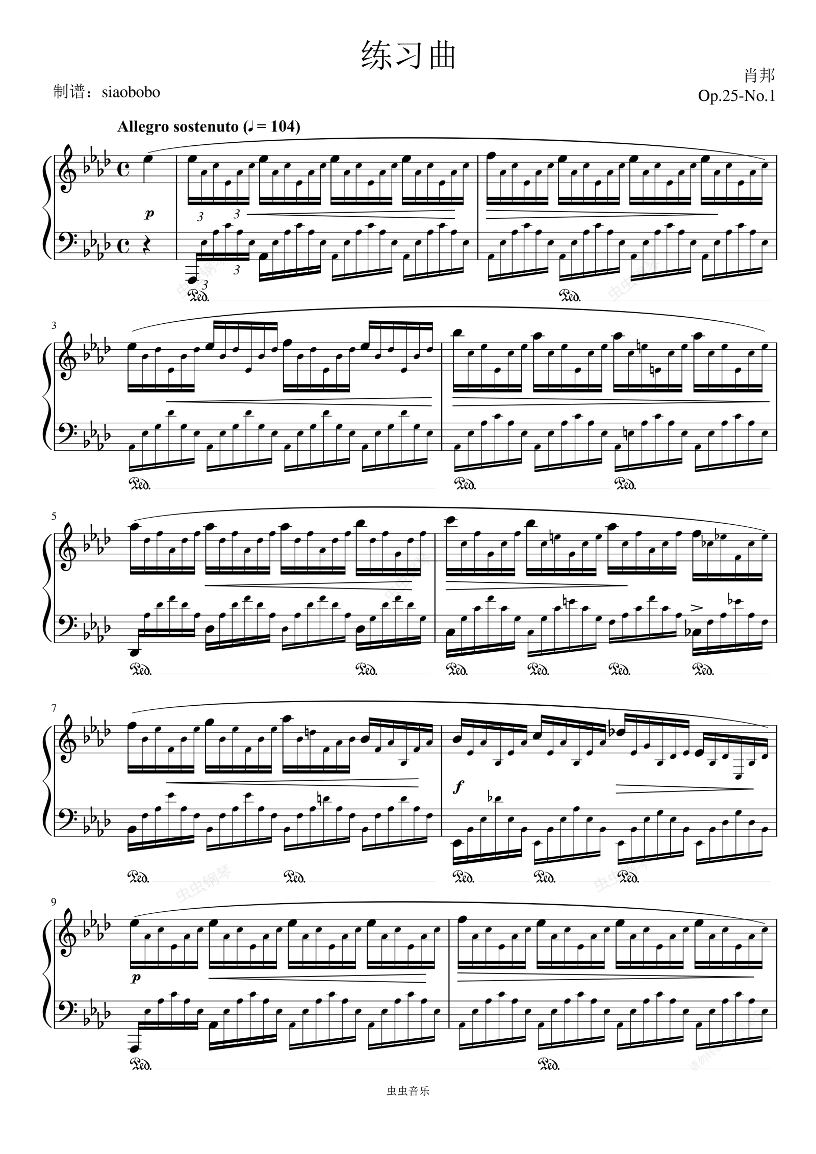 钢琴谱:Etude Op. 25 No. 1——肖邦练习曲 (风弦琴)