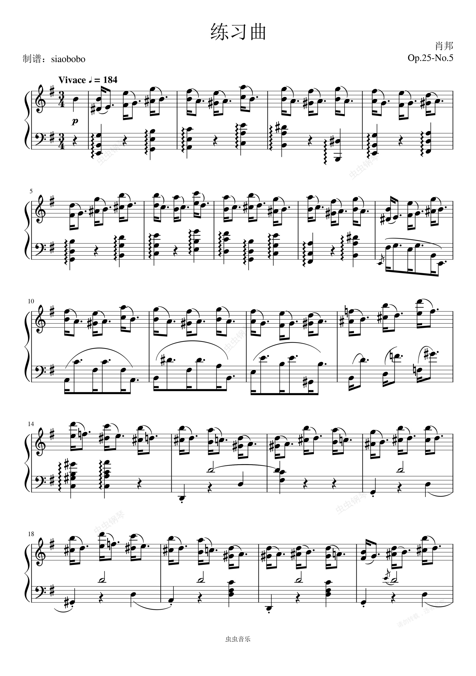 钢琴谱:Etude Op. 25 No. 5——肖邦练习曲
