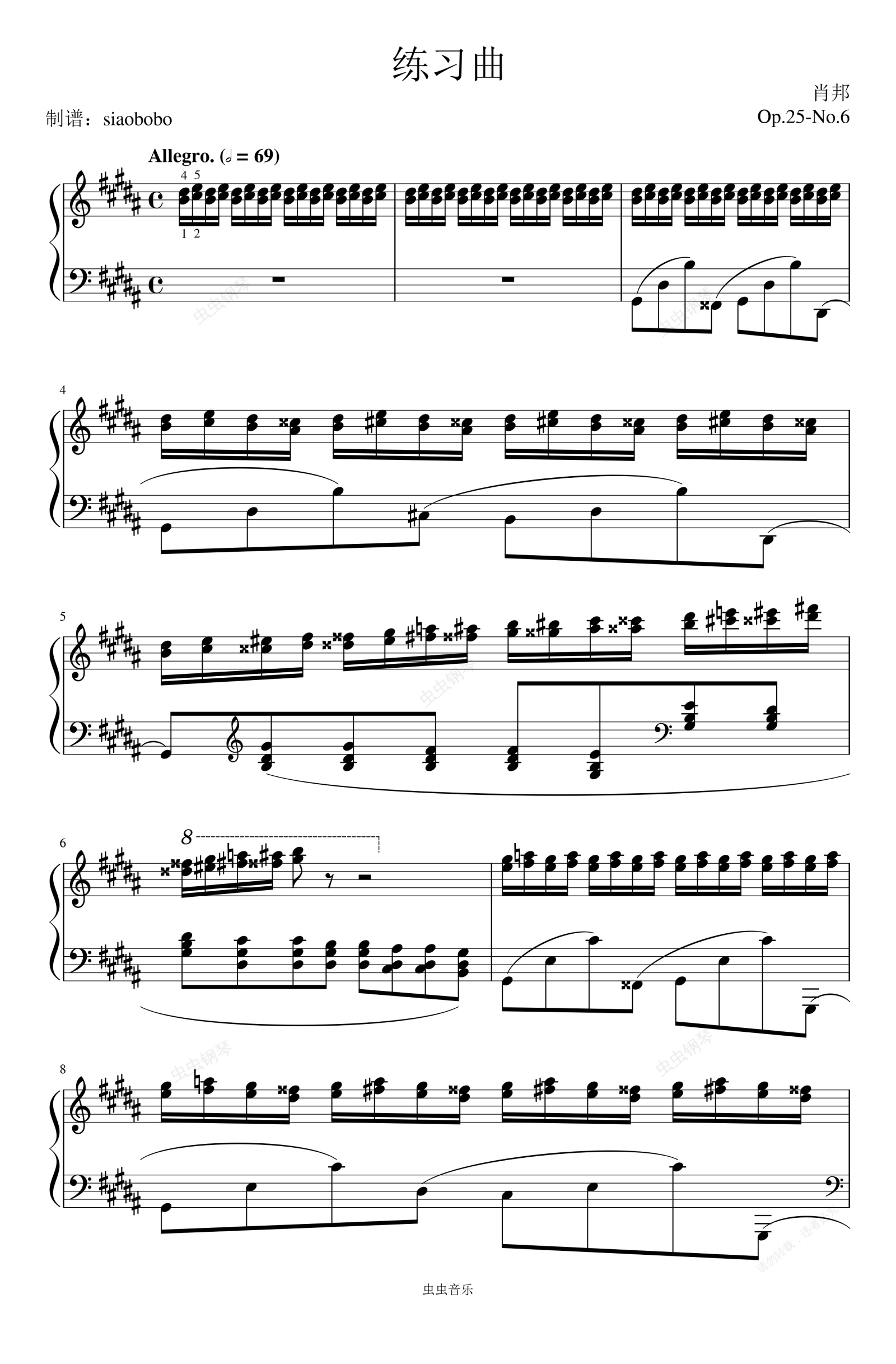 钢琴谱:Etude Op. 25 No. 6——肖邦练习曲(双鸟)