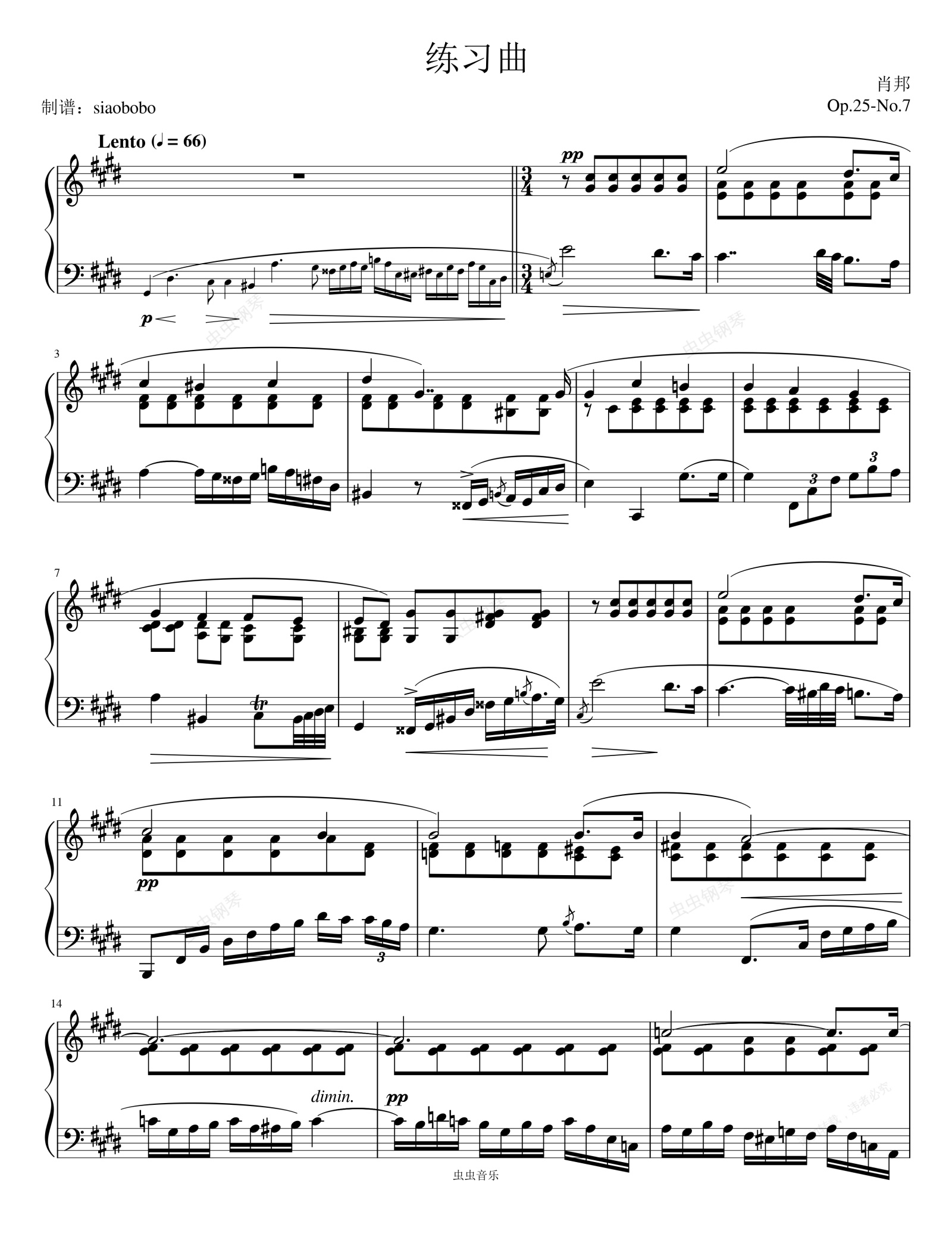钢琴谱:Etude  Op. 25 No. 7——肖邦练习曲(大提琴)