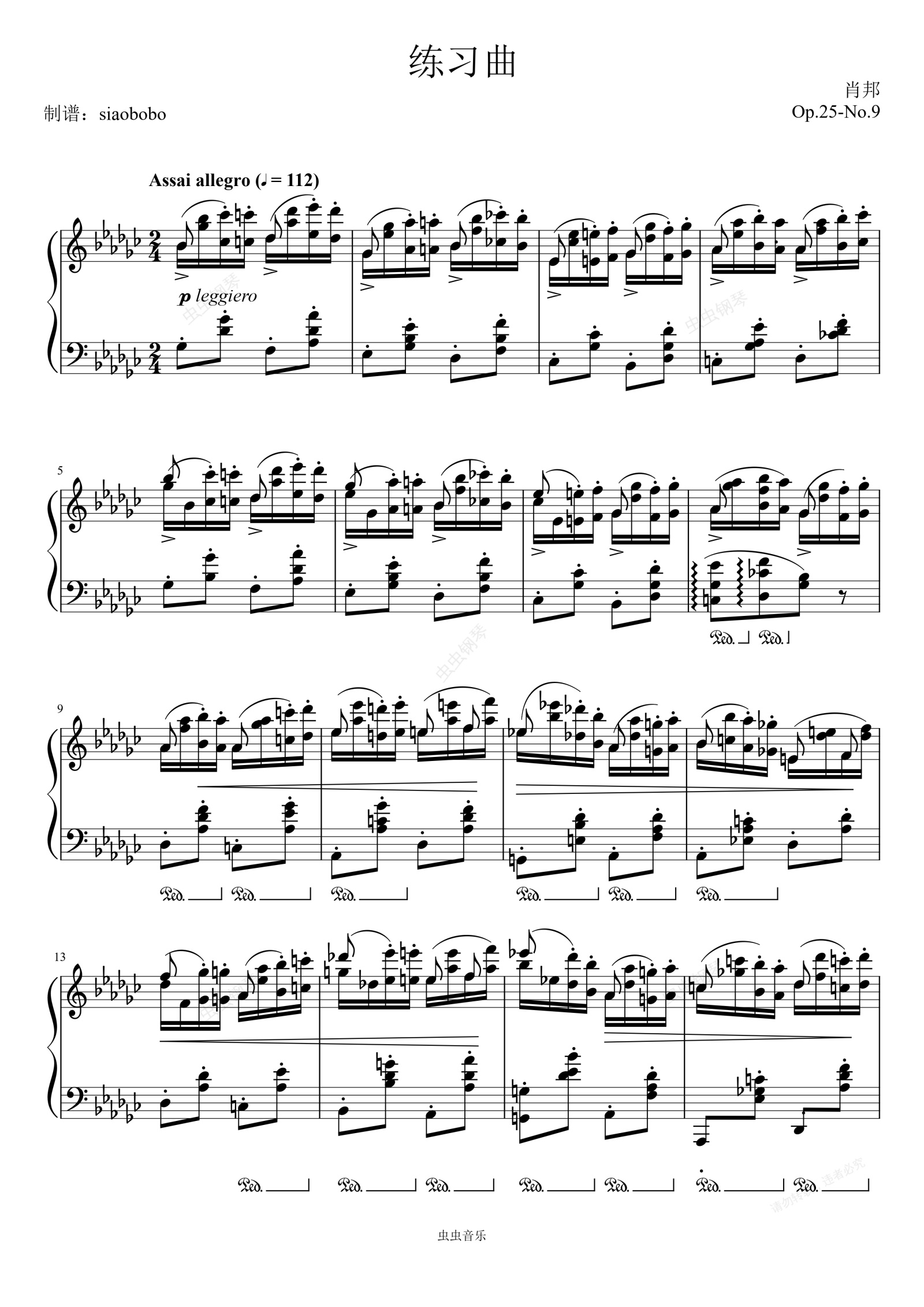 钢琴谱:Etude Op. 25 No. 9——肖邦练习曲(蝴蝶的翅膀)