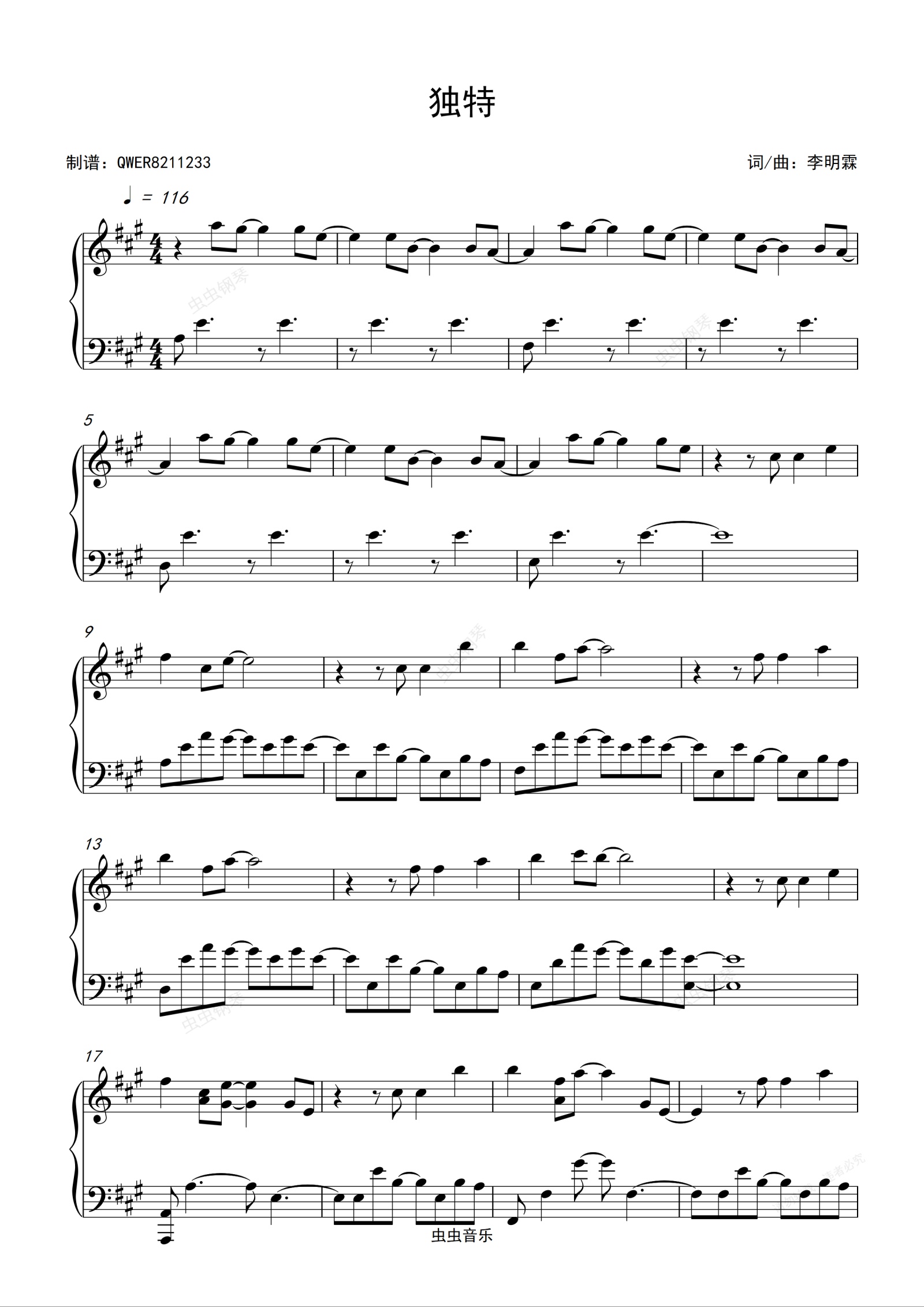 钢琴谱:独特