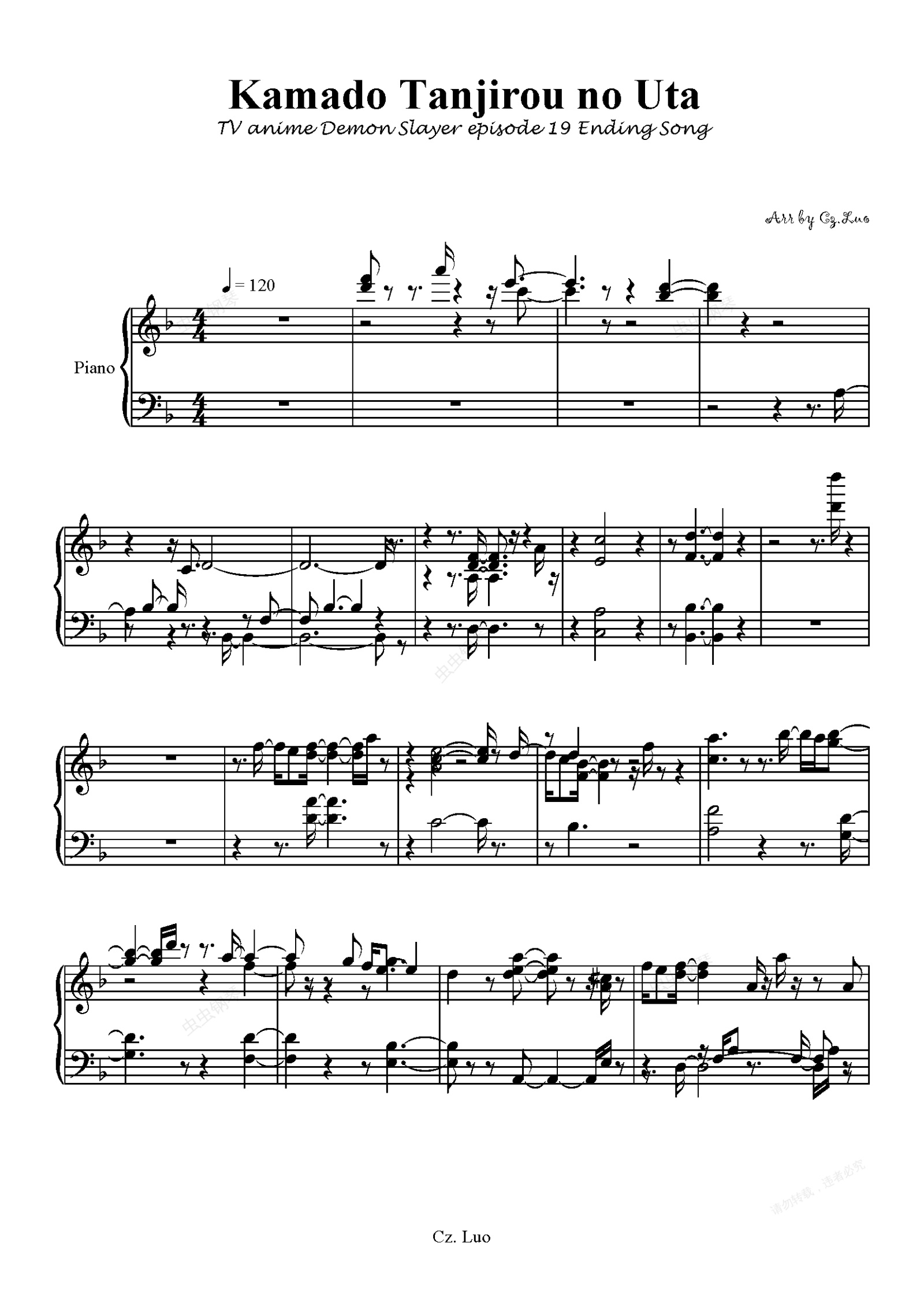 钢琴谱:灶门炭治郎之歌(竈門炭治郎のうた)