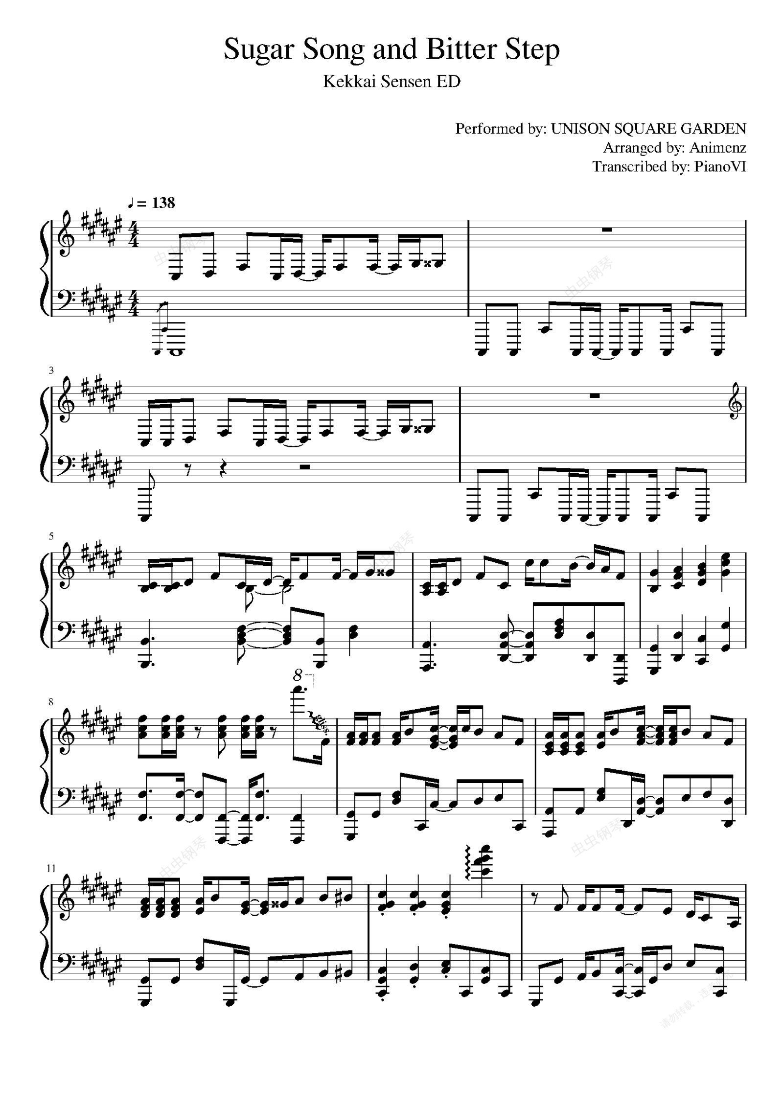 钢琴谱:Sugar song and bitter step--血界战线ed