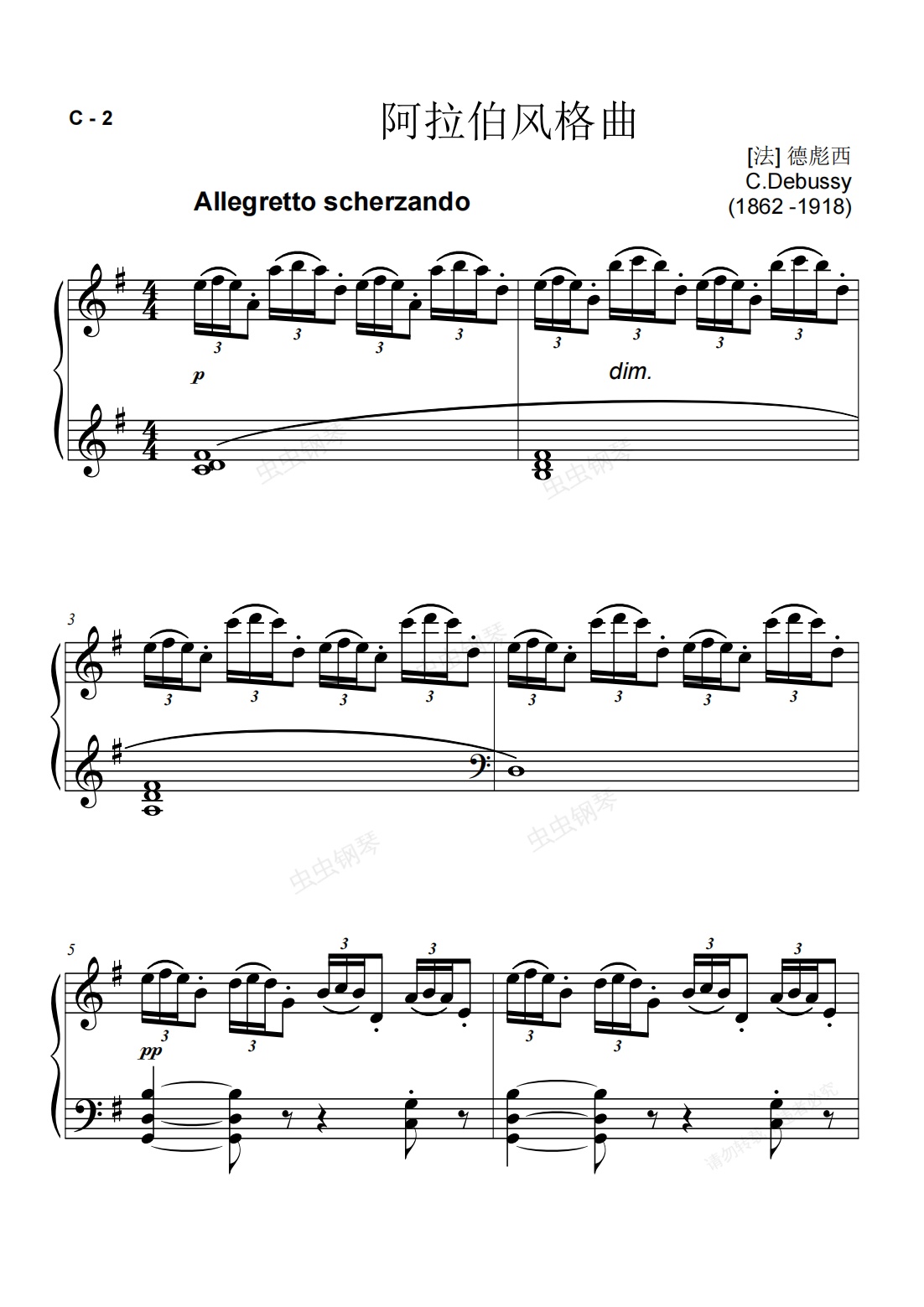 钢琴谱:【九级】C-2 阿拉伯风格曲 [带指法](2019新版钢琴考级)