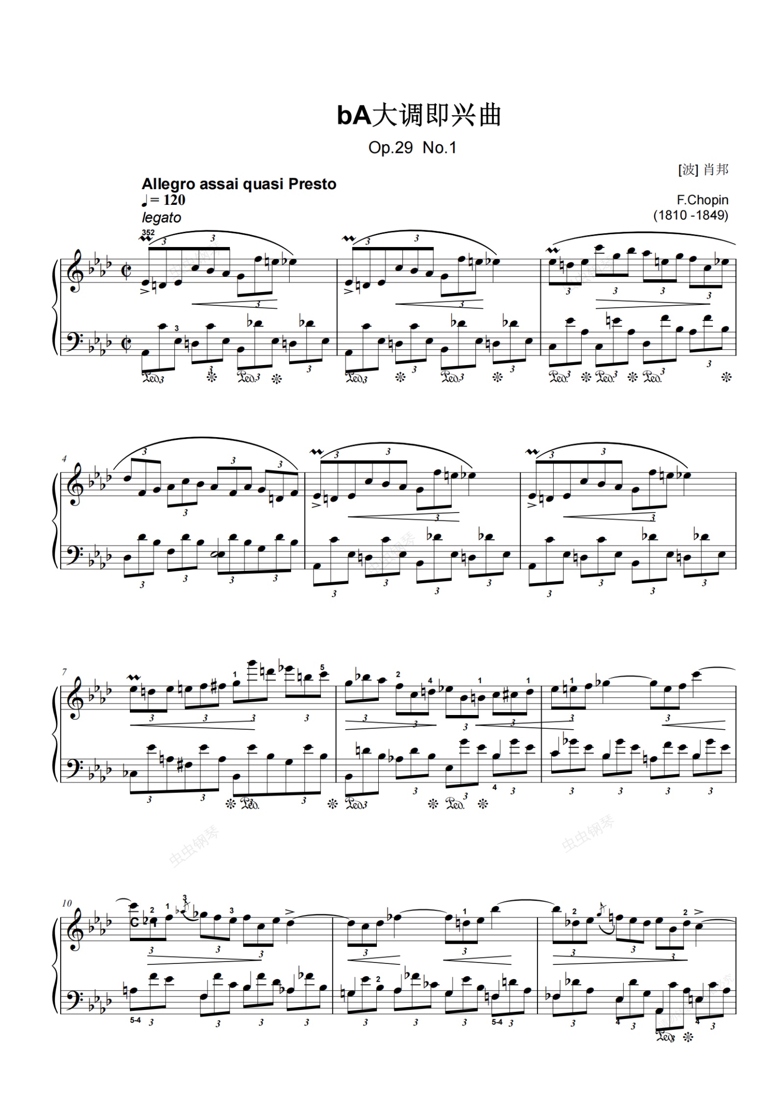钢琴谱:【十级】C-1 降A大调即兴曲 [带指法](2019新版钢琴考级)