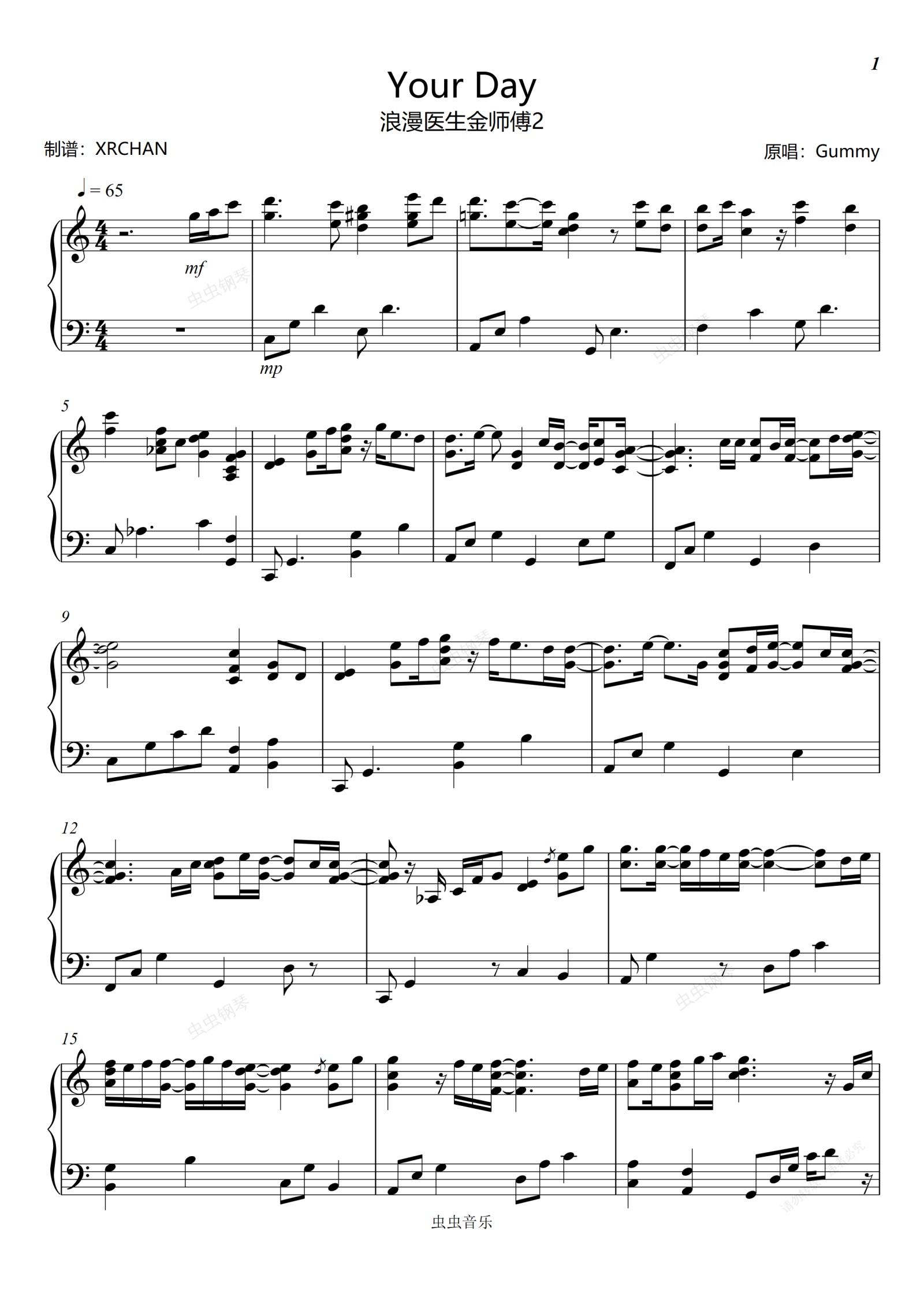 钢琴谱:Your Day  浪漫医生金师傅2 gummy
