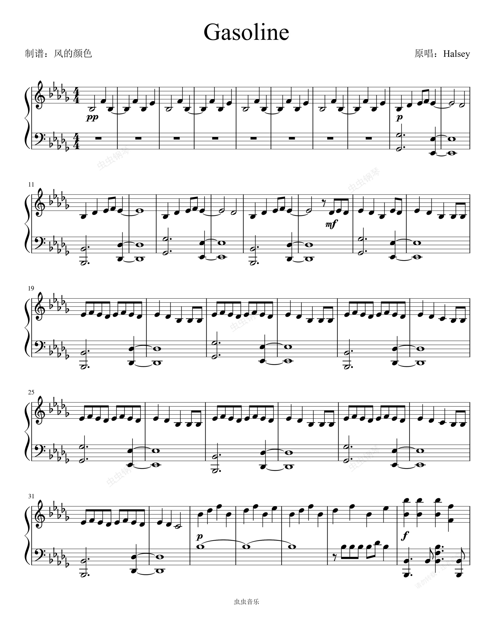 钢琴谱:Gasoline~美国女歌手Halsey经典单曲