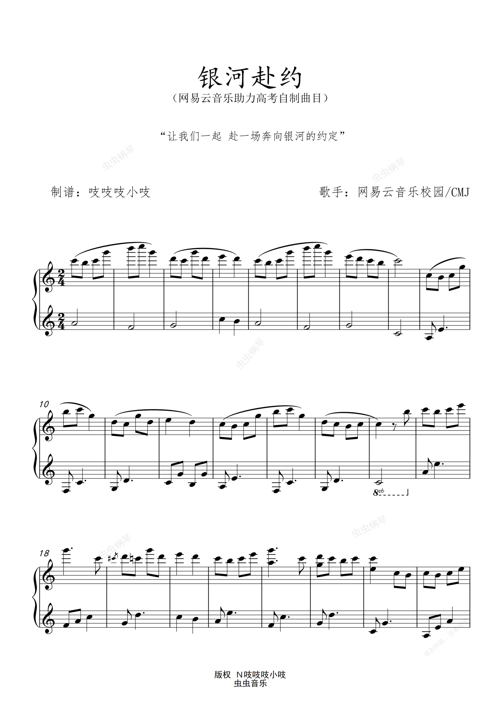 钢琴谱:银河赴约 (网易云音乐助力高考自制曲目)