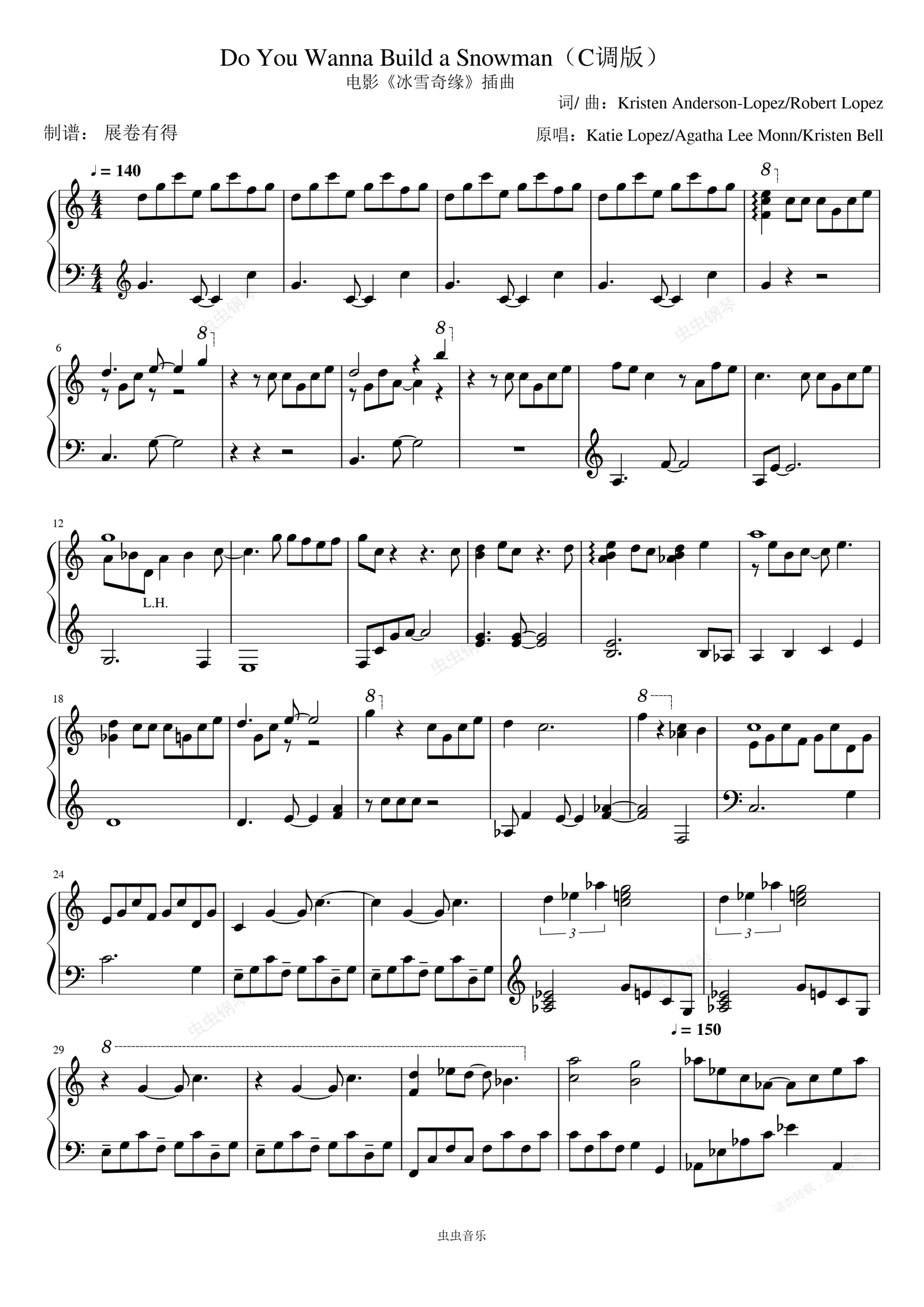 钢琴谱:Do You Wanna Build a Snowman你想堆雪人吗(C调版)