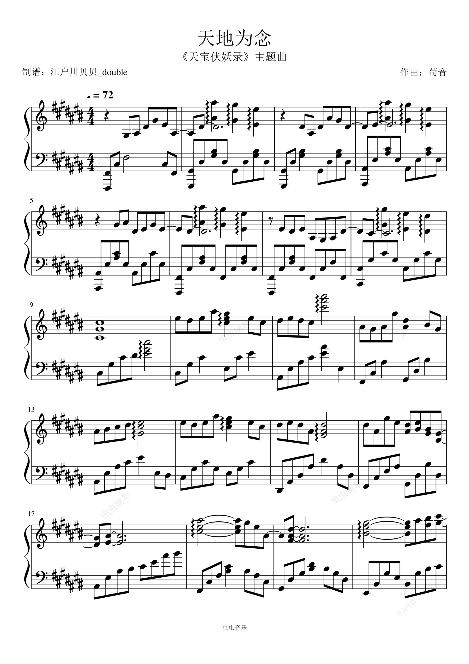 钢琴谱:【天宝伏妖录】天地为念(周深)