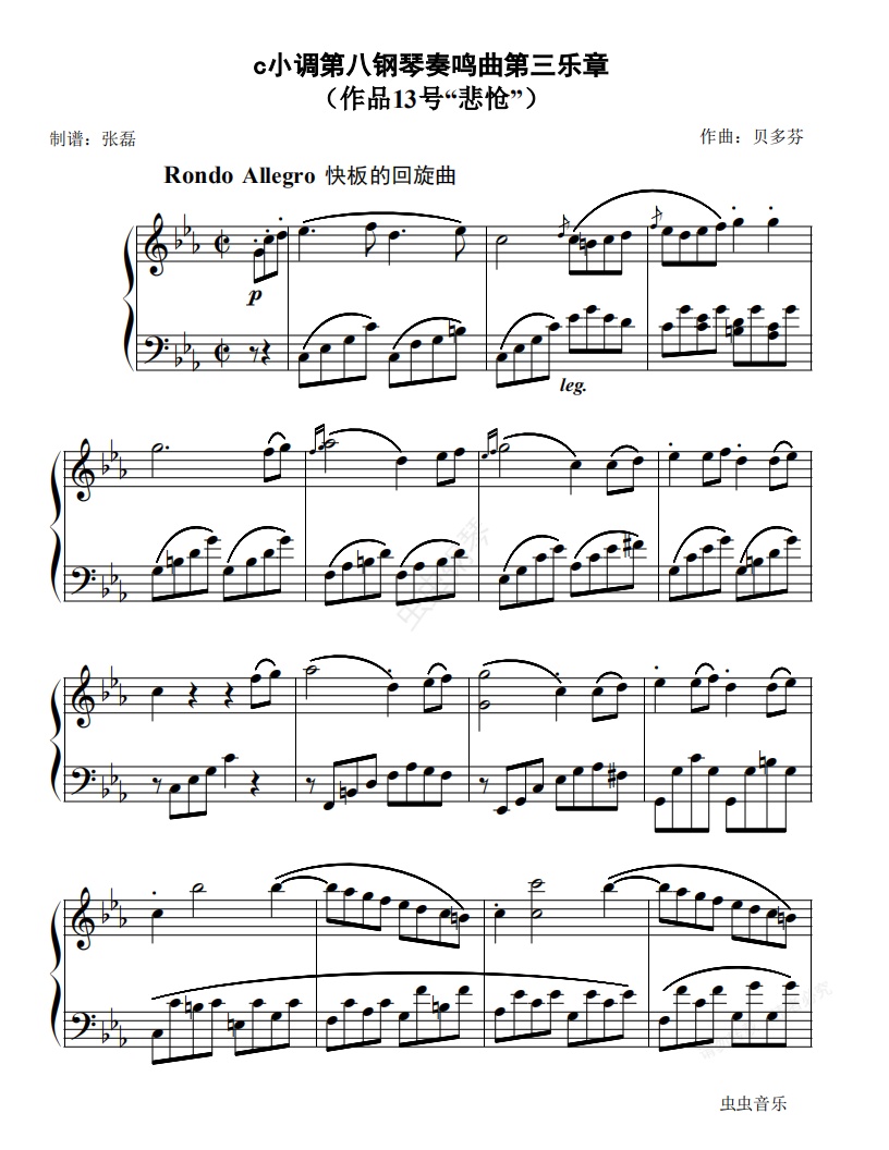 钢琴谱:c小调第八钢琴奏鸣曲第三乐章---悲怆第三乐章--贝多芬