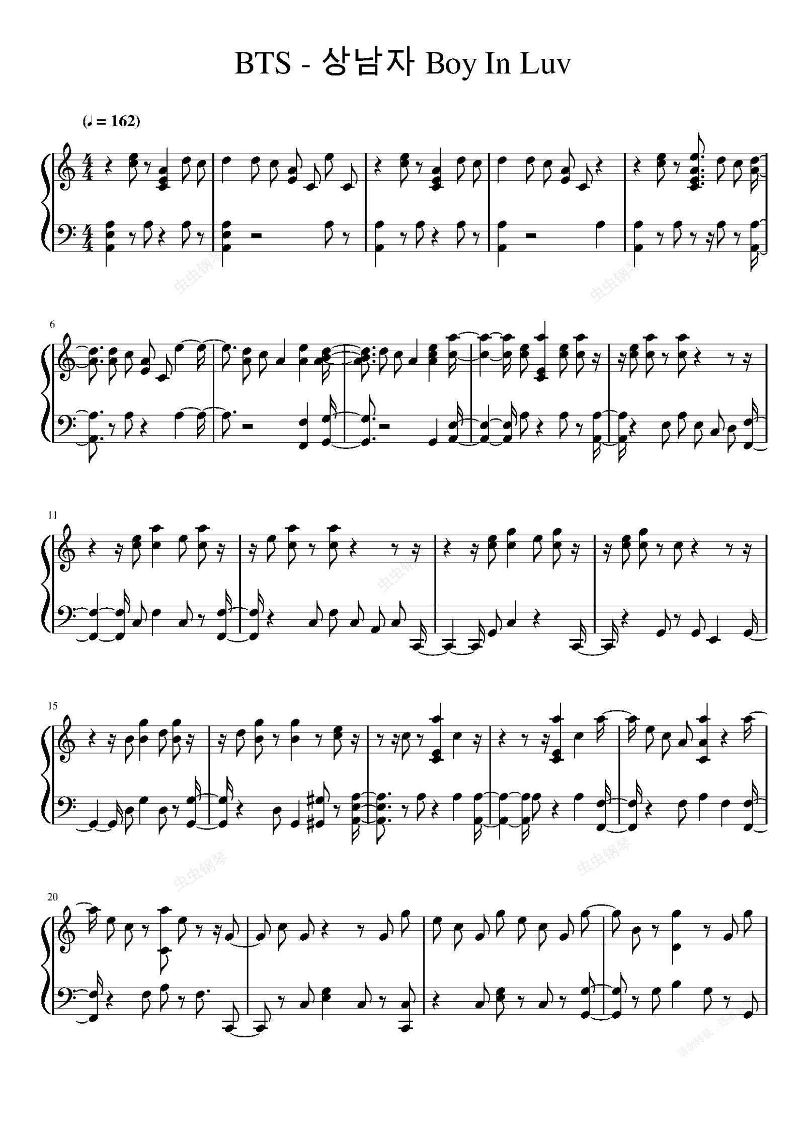 钢琴谱:Boy in Love-BTS防弹少年团
