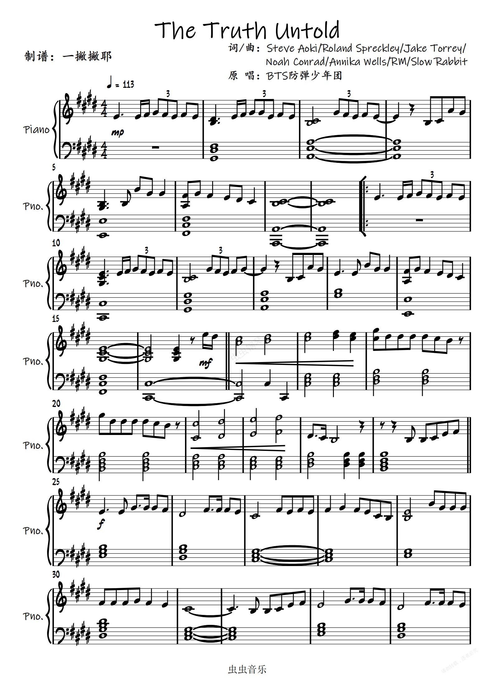 钢琴谱:The Truth Untold【独奏谱】BTS防弹少年团「一撇撇耶」
