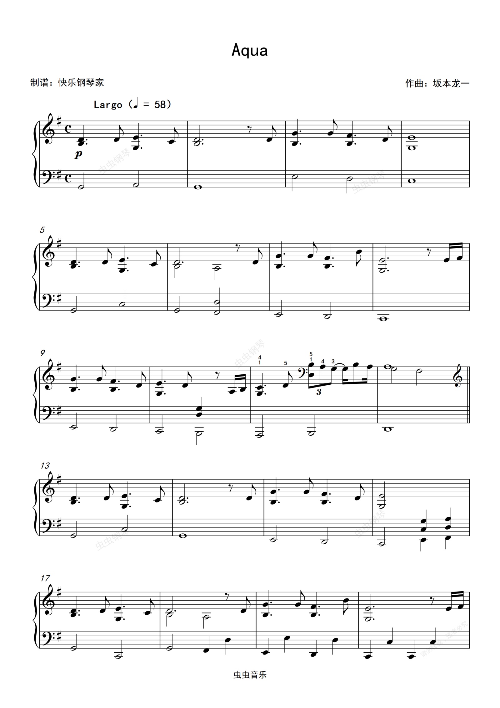 钢琴谱:Aqua