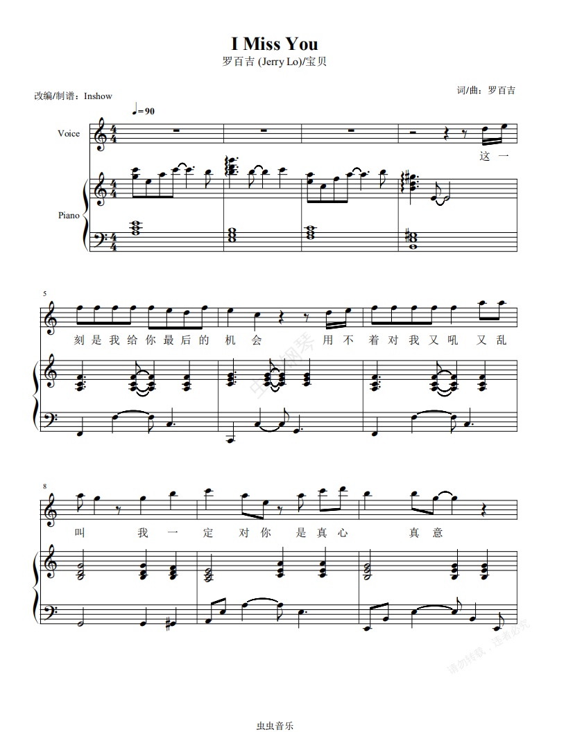 钢琴谱:罗百吉/宝贝 - I Miss You【弹唱谱】