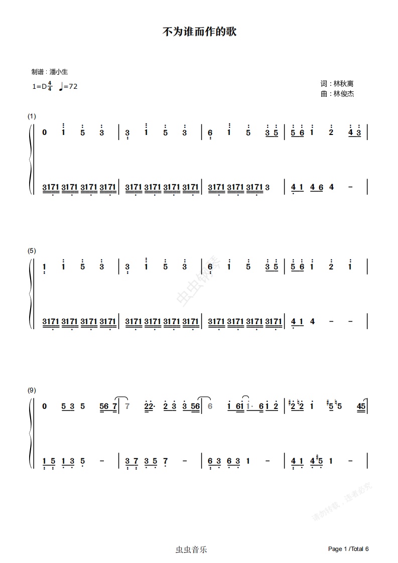 钢琴谱:不为谁而作的歌 双手简谱 林俊杰