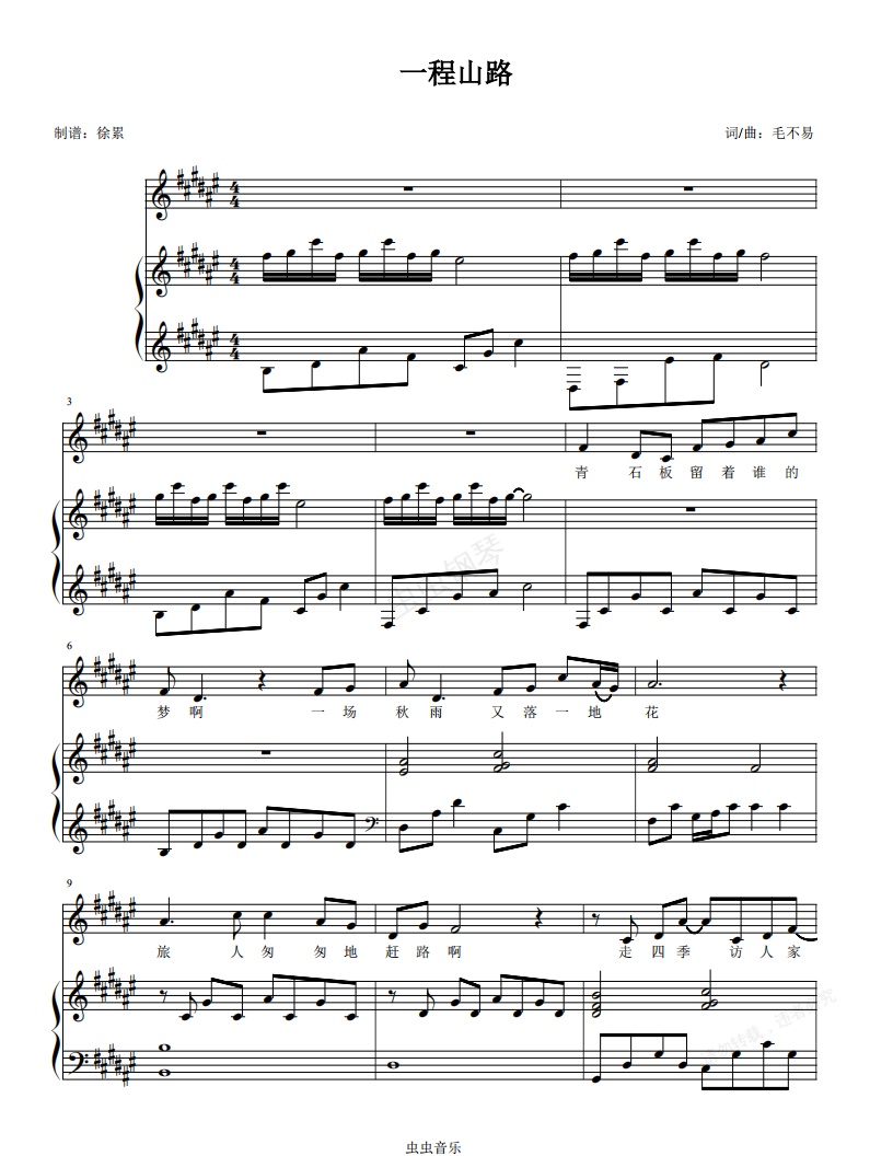 钢琴谱:超好听!毛不易《一程山路》钢琴弹唱谱