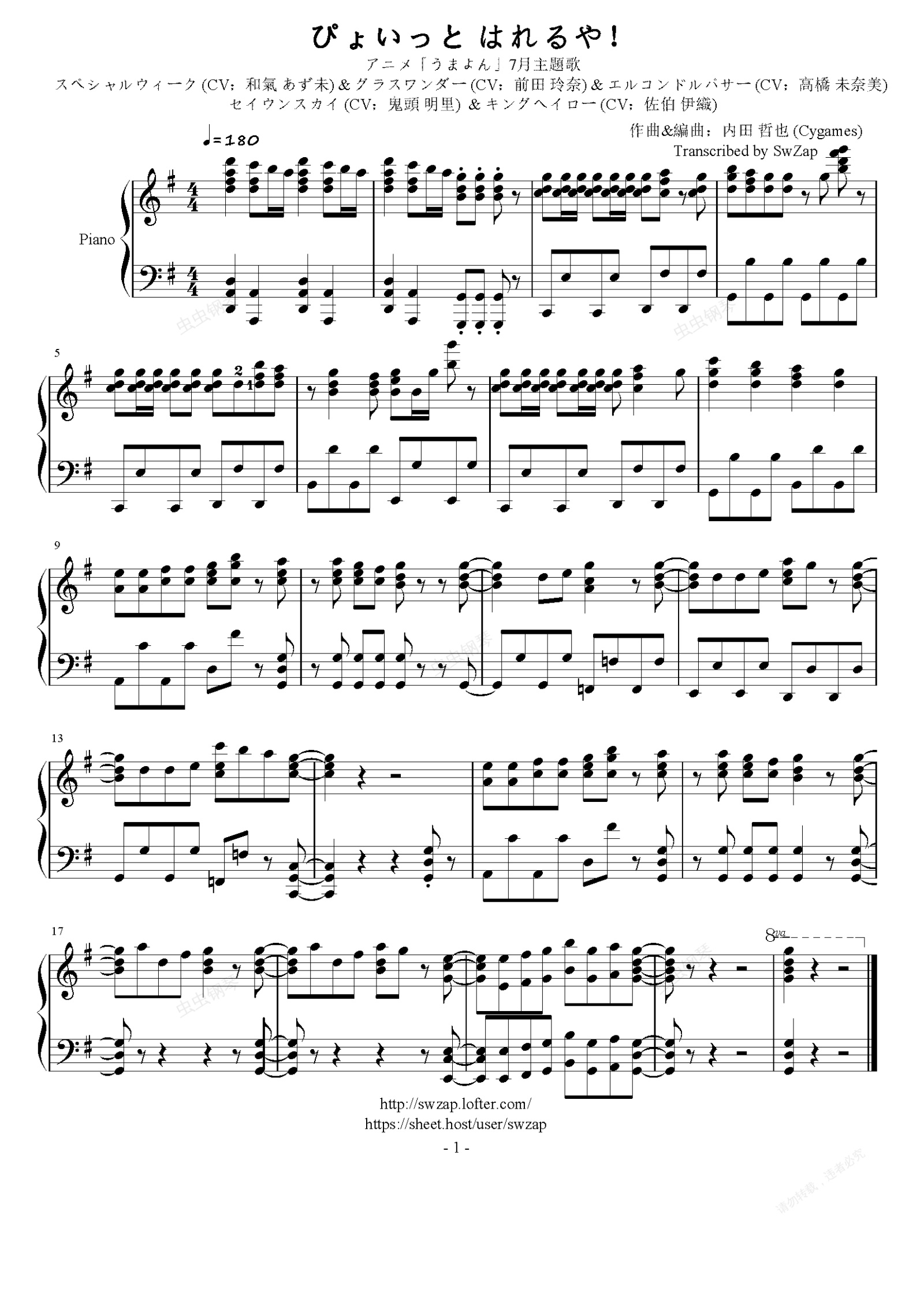 钢琴谱:《赛马娘四格》ED - ぴょいっと♪はれるや!