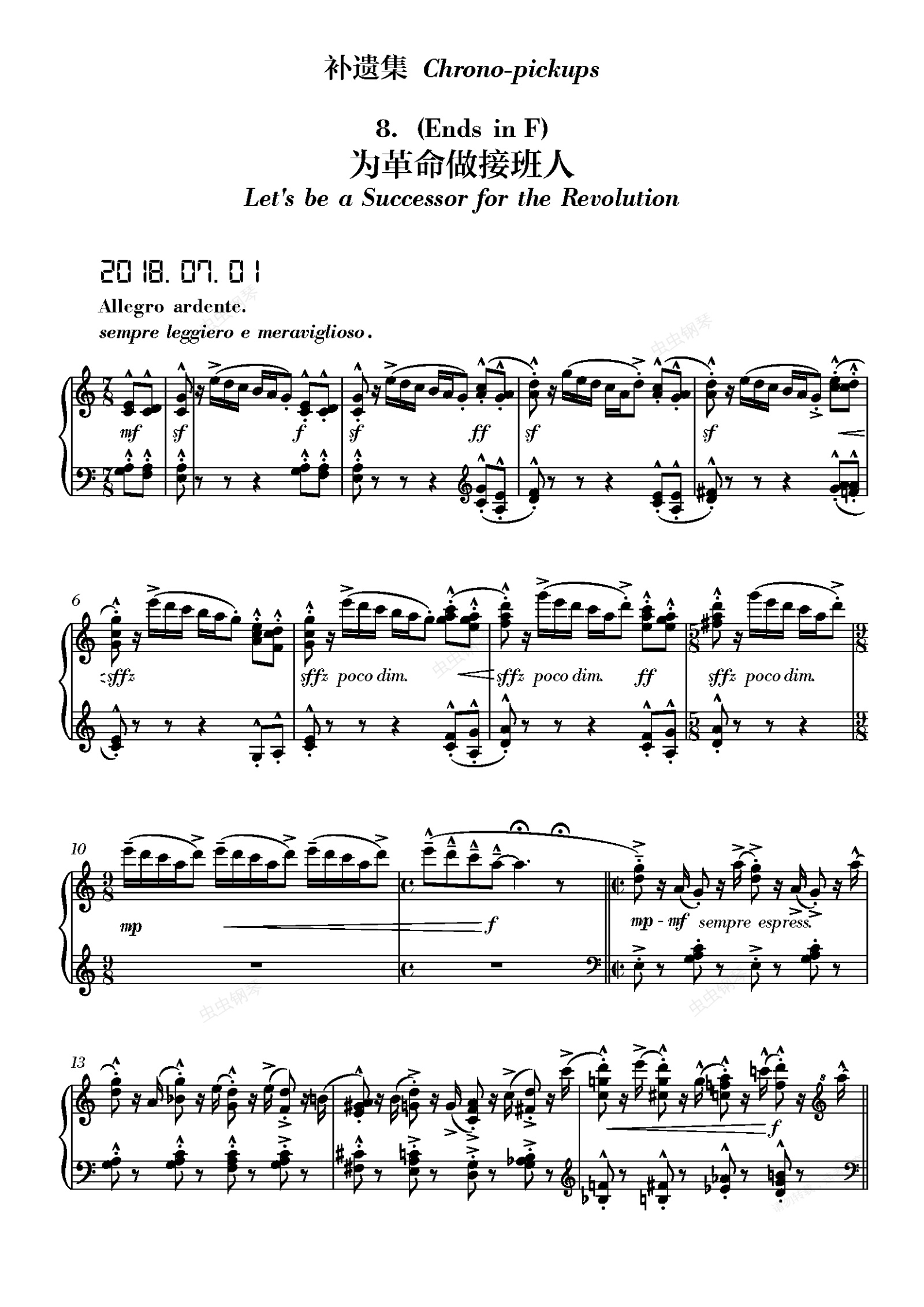 钢琴谱:为革命做接班人 - 陈文戈(选自《补遗集》)