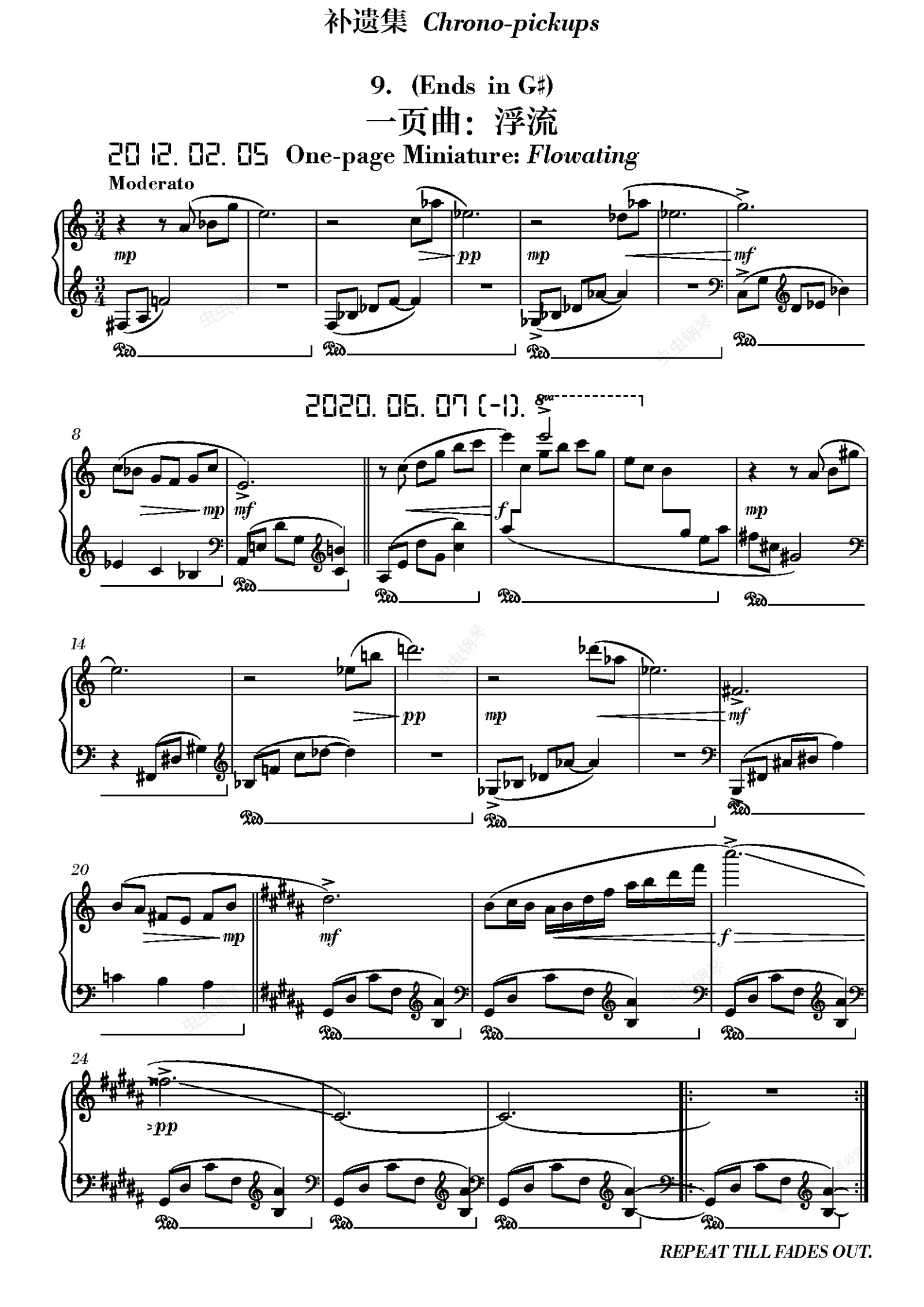 钢琴谱:浮流 - 陈文戈(选自《补遗集》)