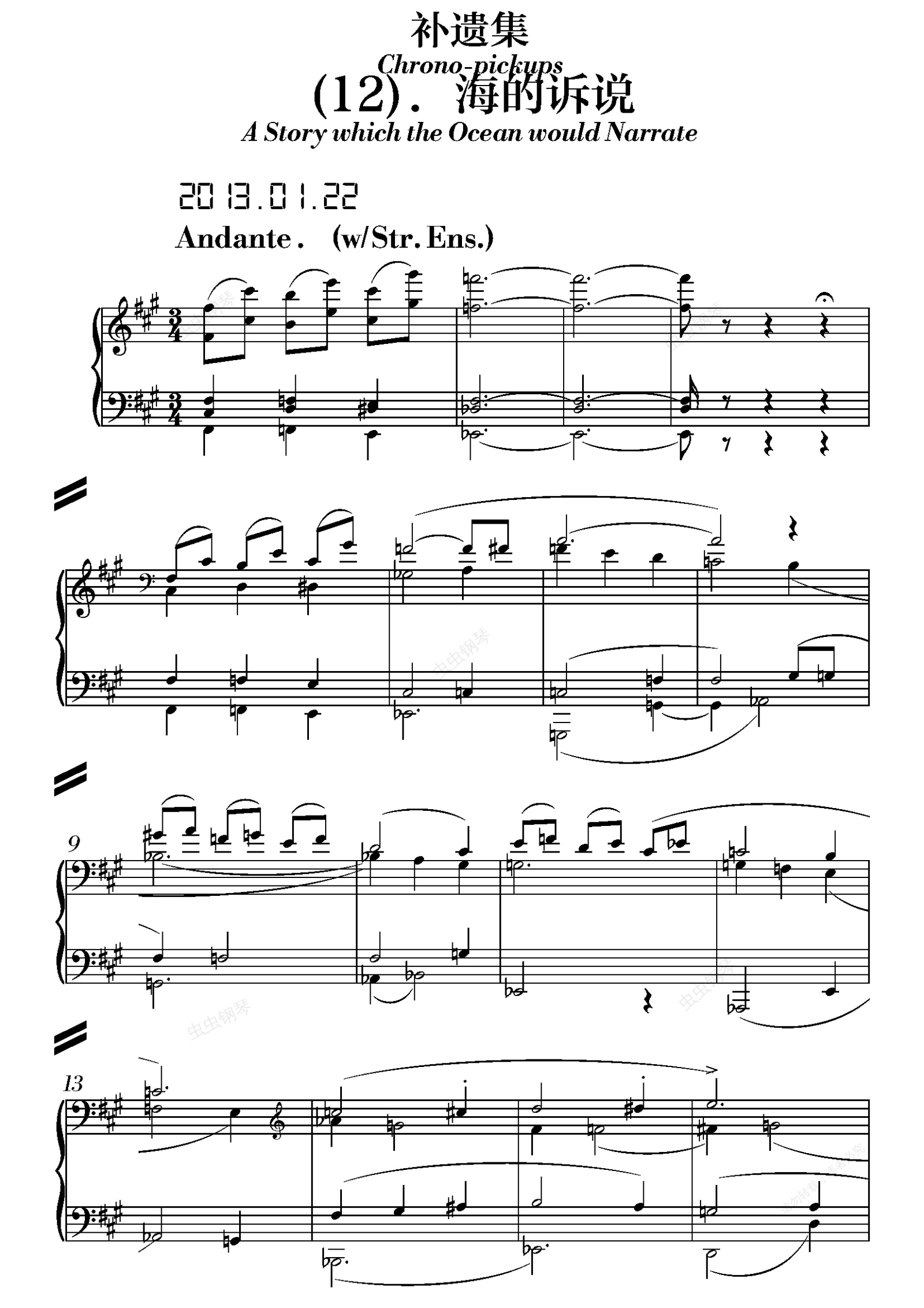 钢琴谱:海的诉说 - 陈文戈(选自《补遗集》)