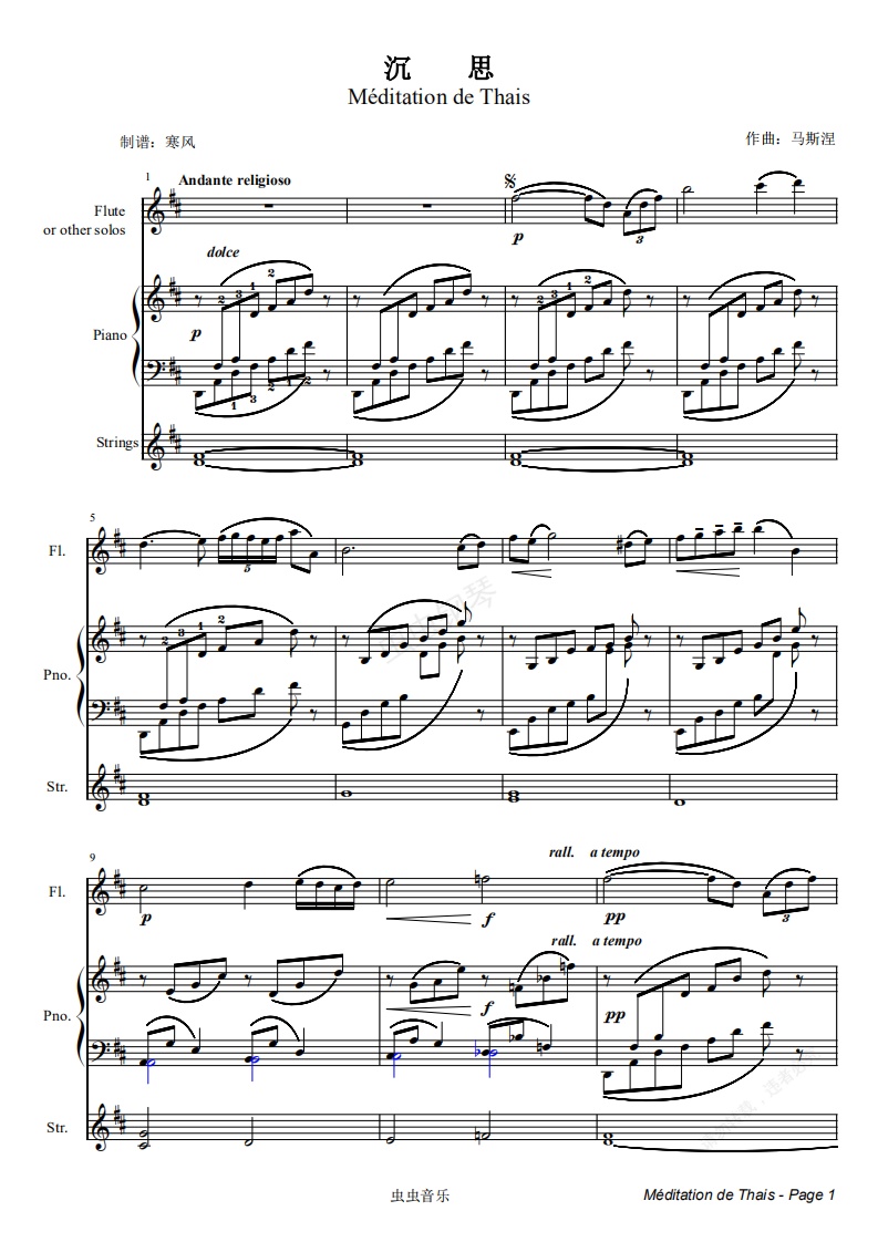 钢琴谱:马斯涅-沉思(小型总谱)