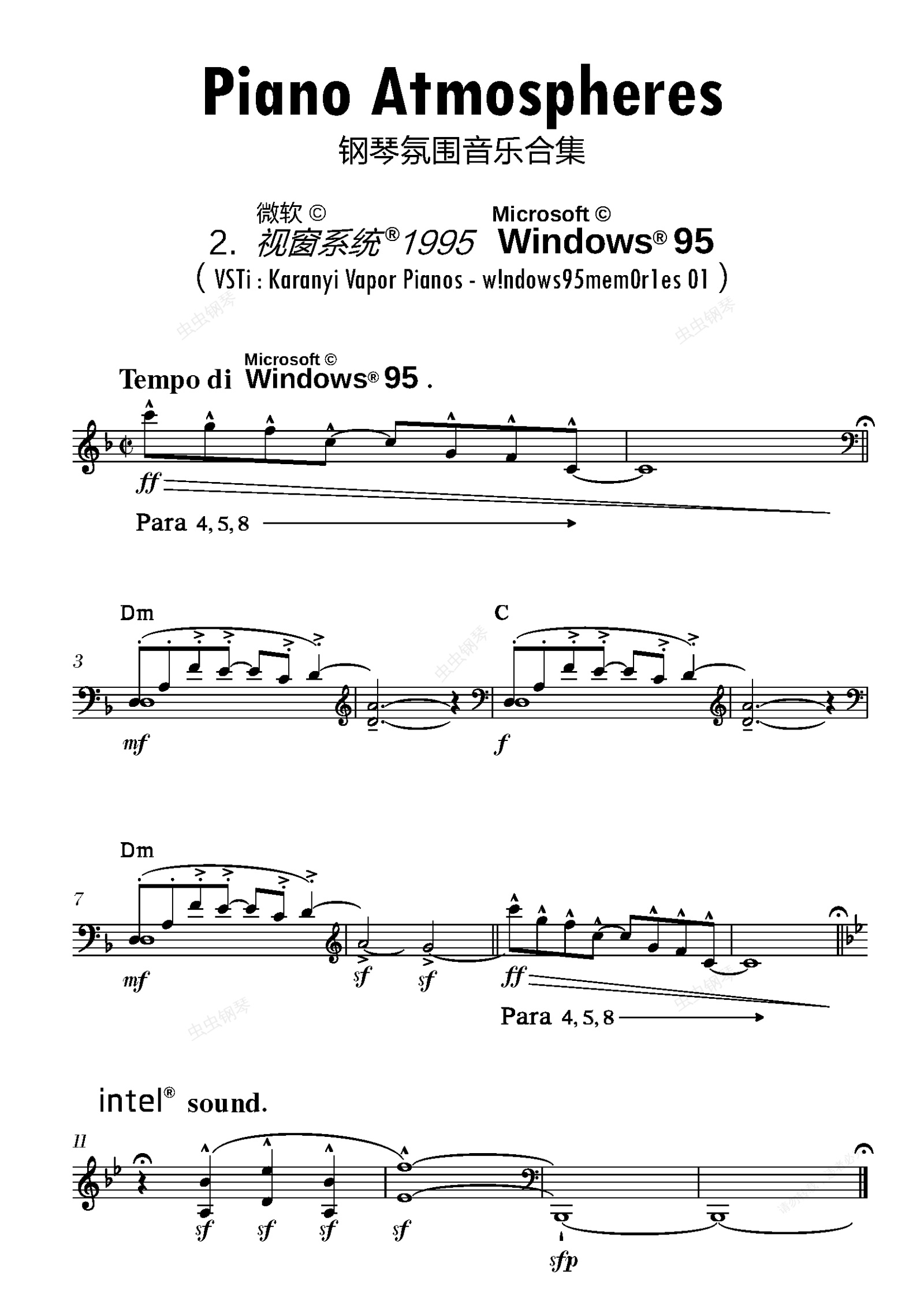 钢琴谱:2. Windows 95 - 钢琴氛围音乐合集 Vaporwave Piano