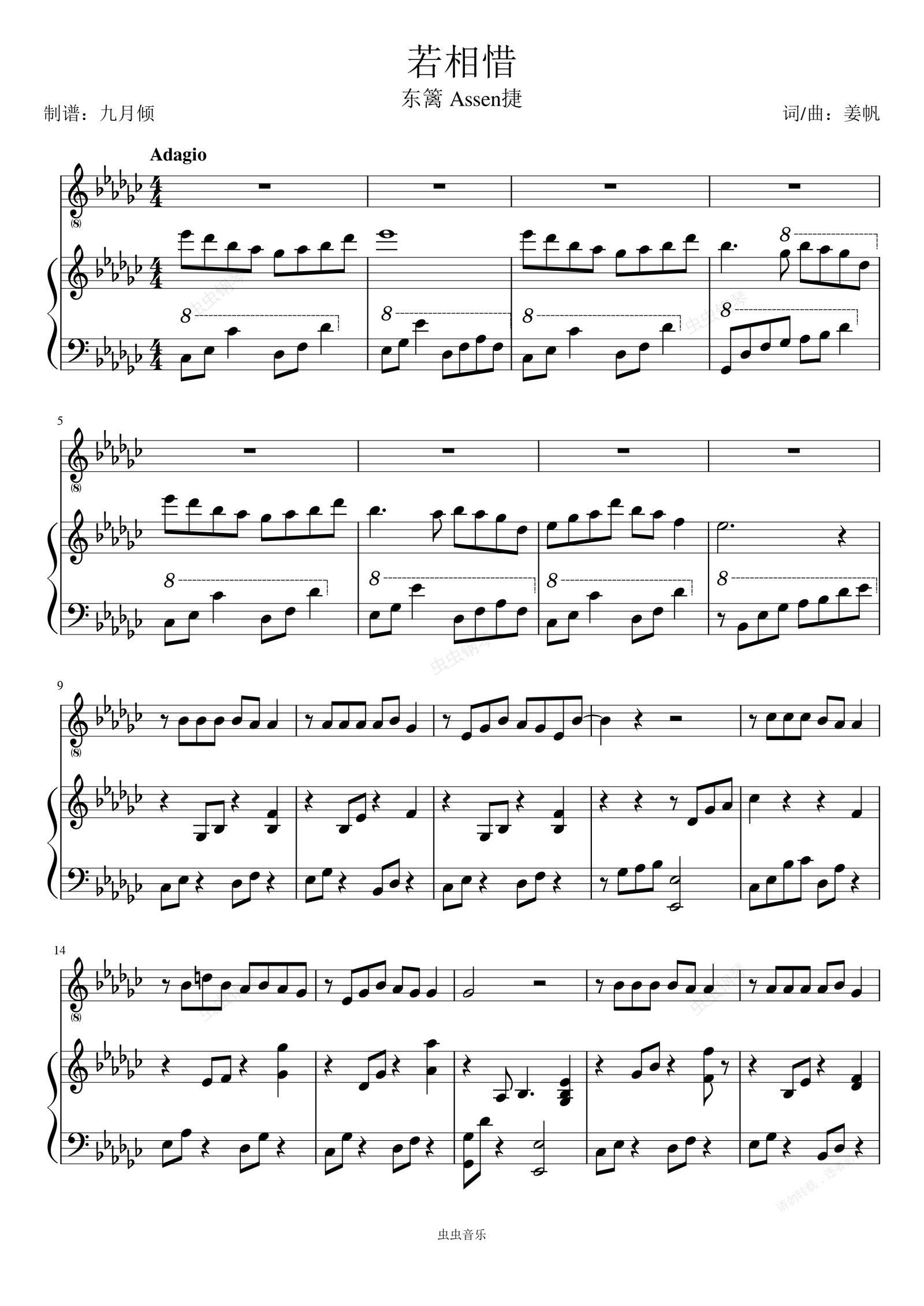 钢琴谱:若相惜-东篱 Assen捷(改良)