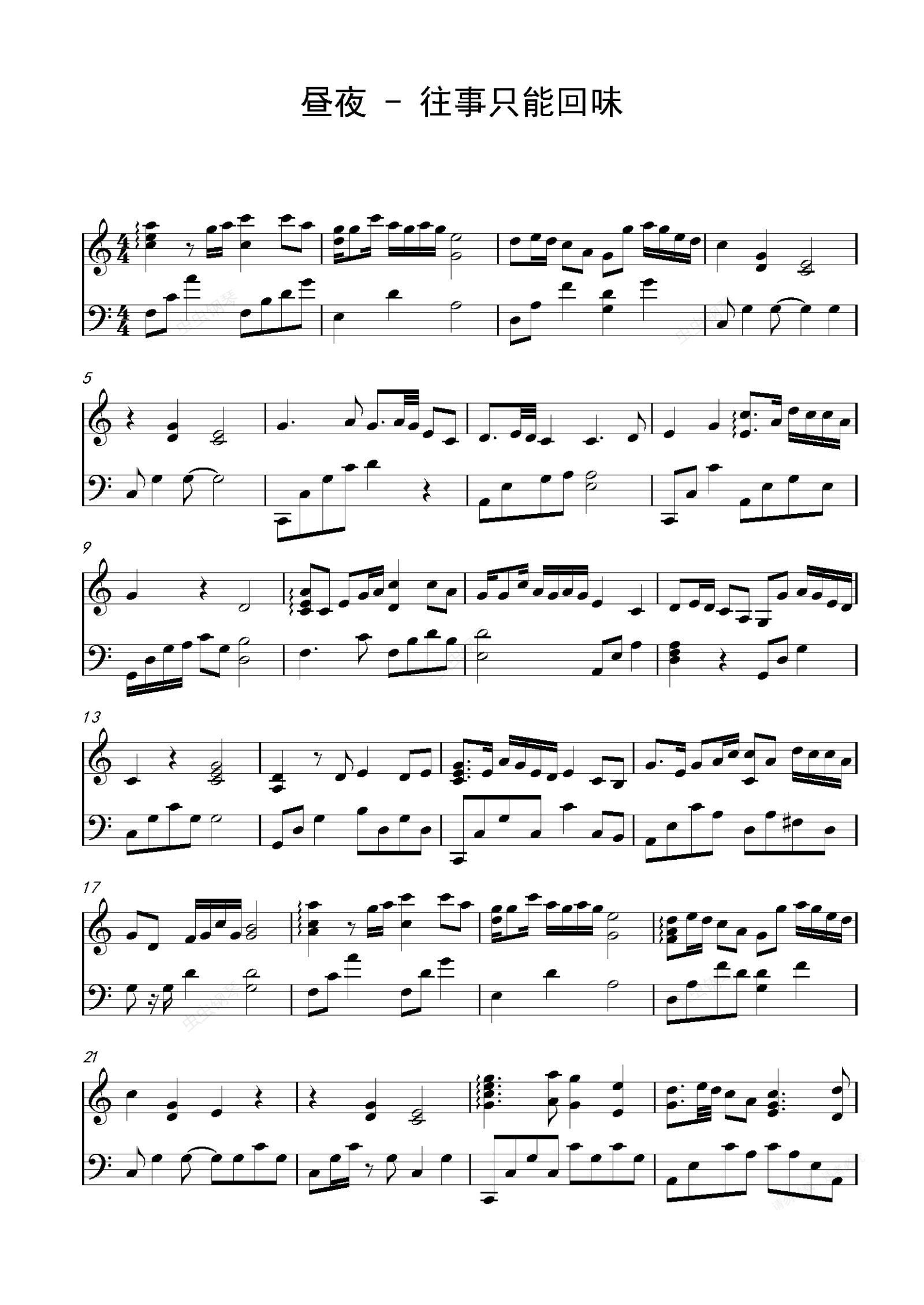 钢琴谱:昼夜 - 往事只能回味(Cover:尤雅)
