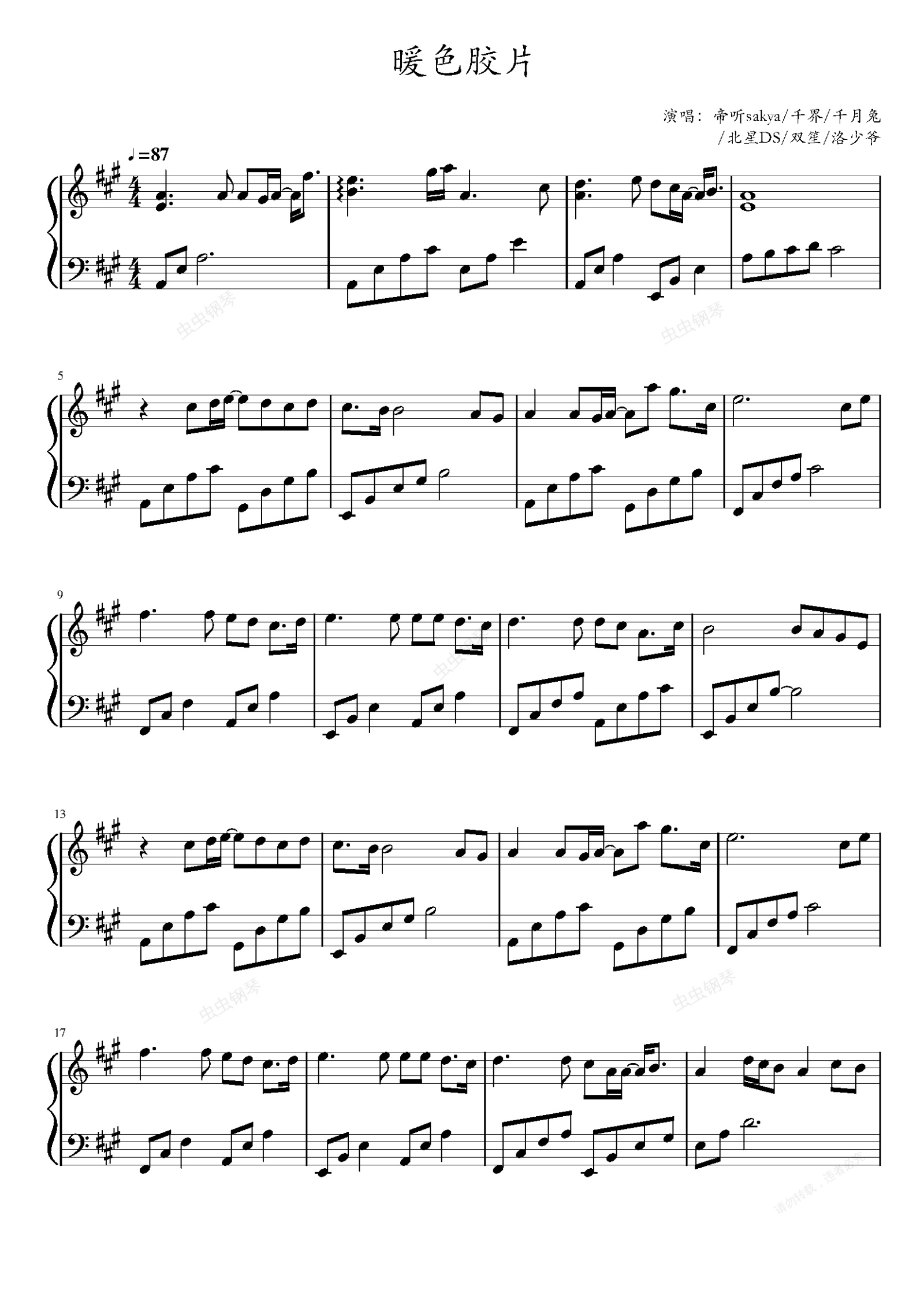 钢琴谱:暖色胶片(原曲《ほころび》)(简单版,适合初学者)