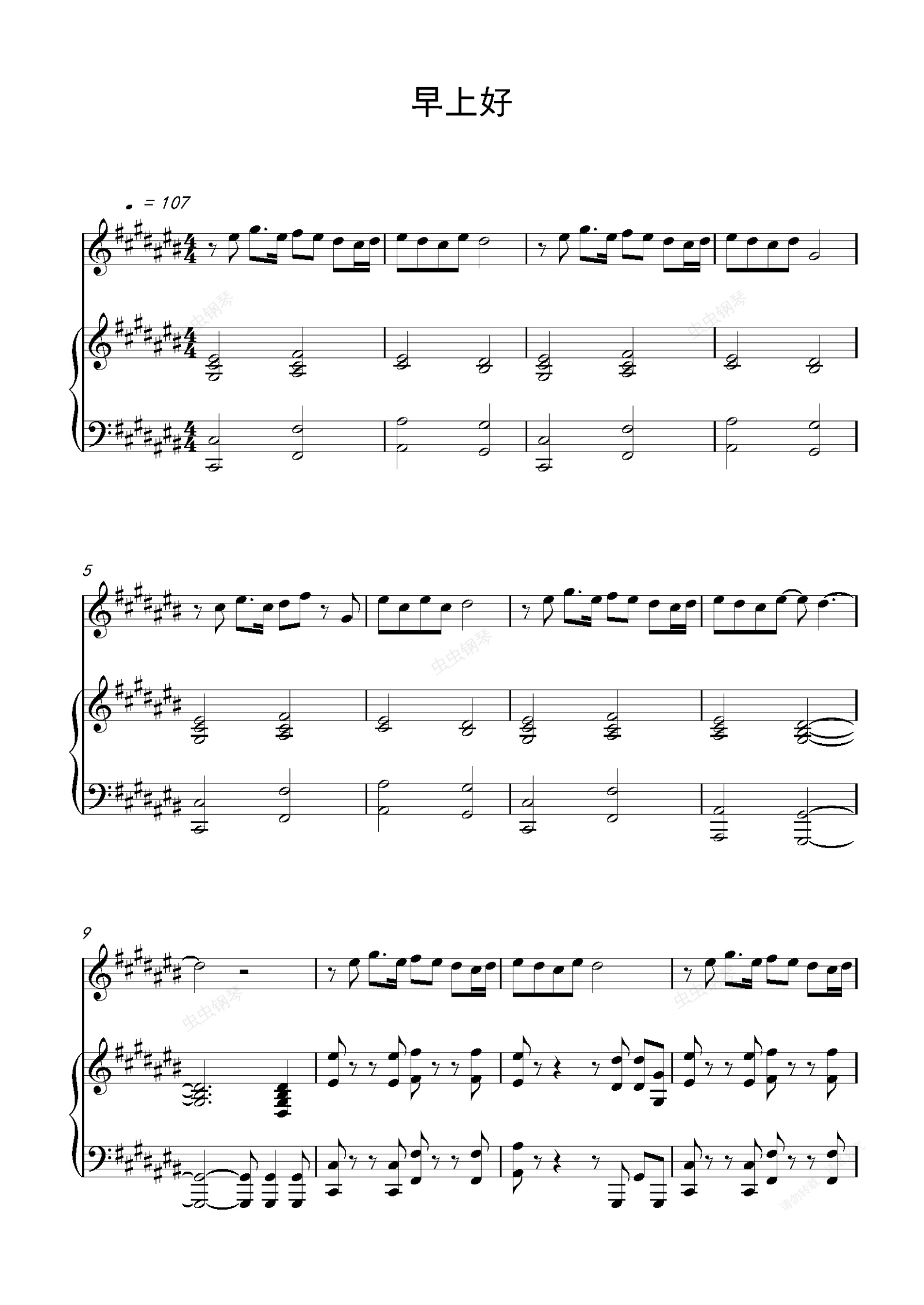钢琴谱:早上好