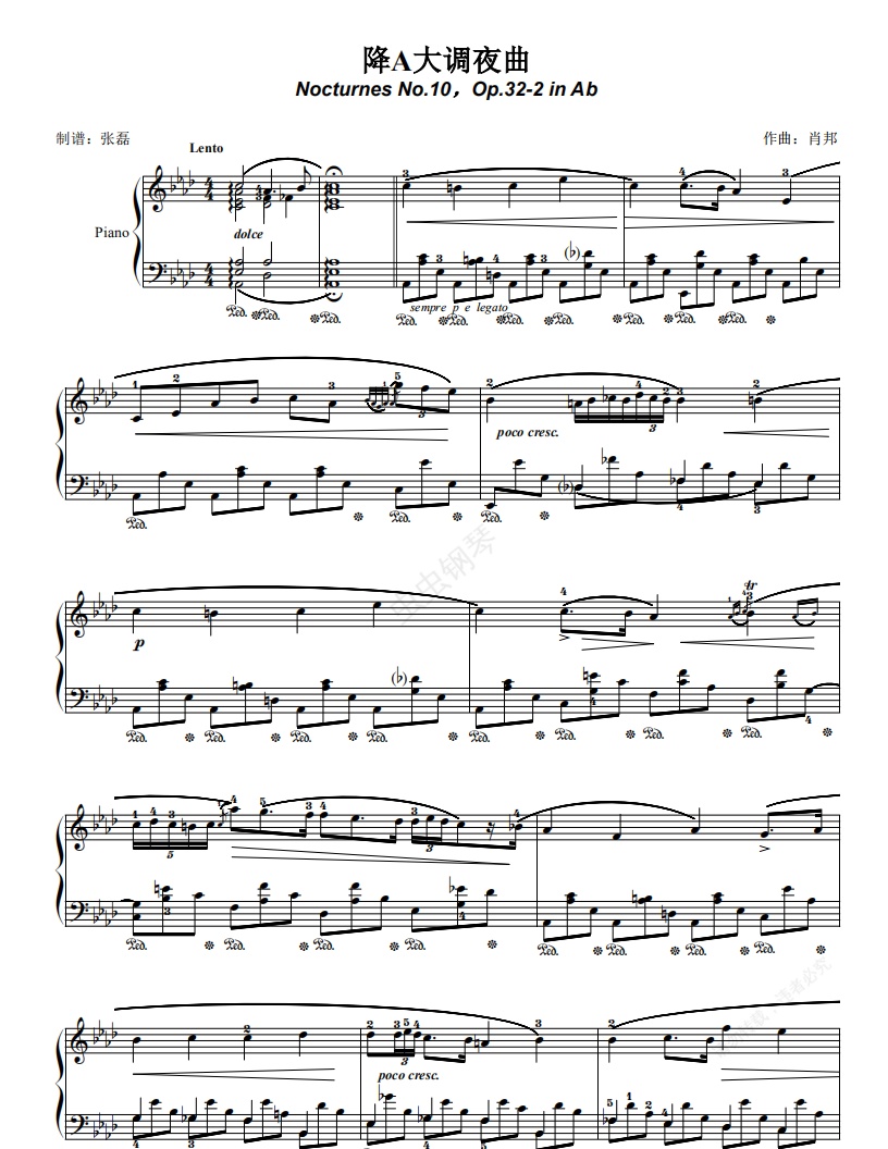 钢琴谱:降A大调夜曲NO.10--肖邦