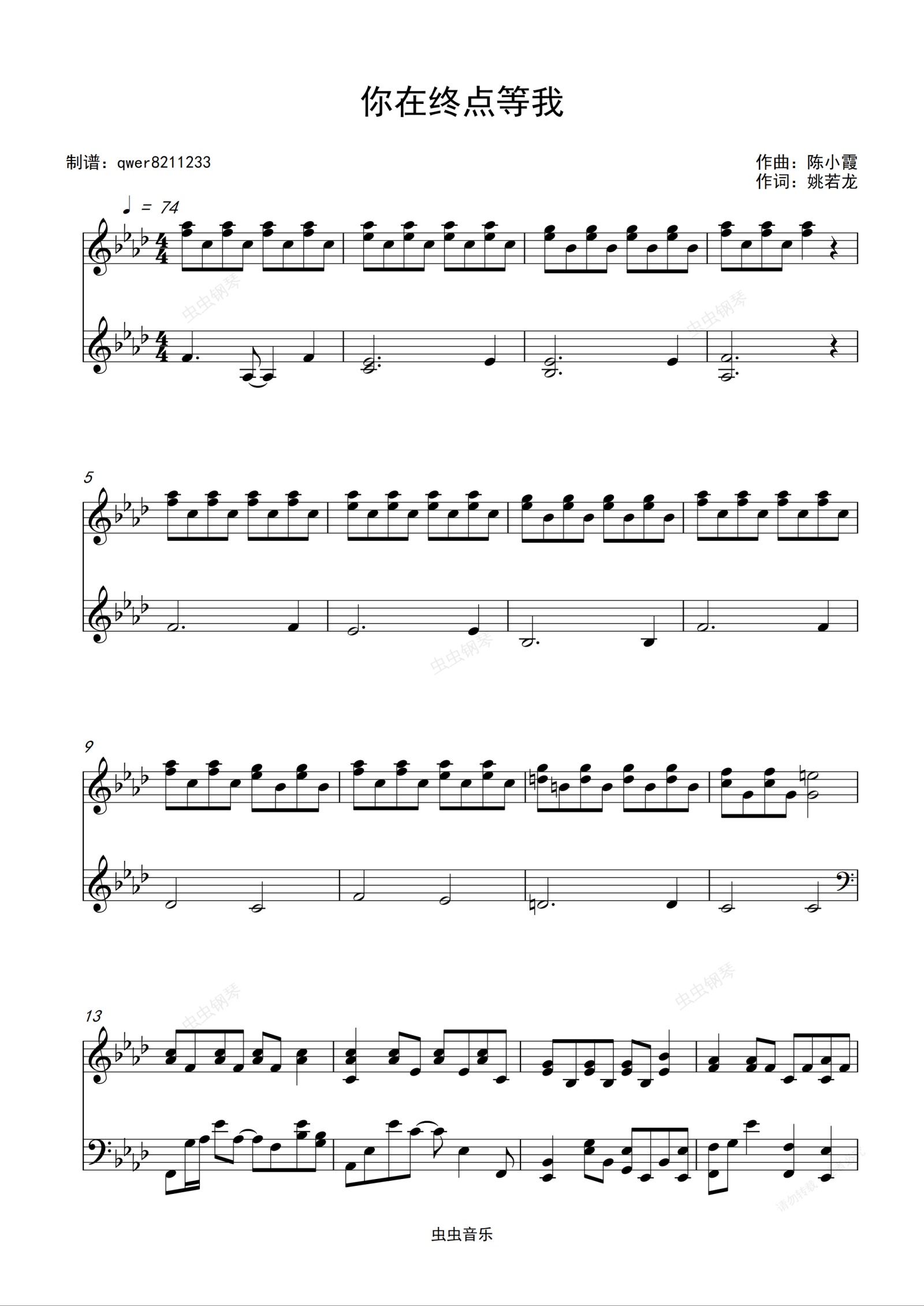 钢琴谱:你在终点等我