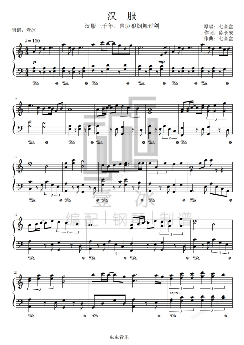 钢琴谱:汉服//七音盒-C调壹冰钢琴版