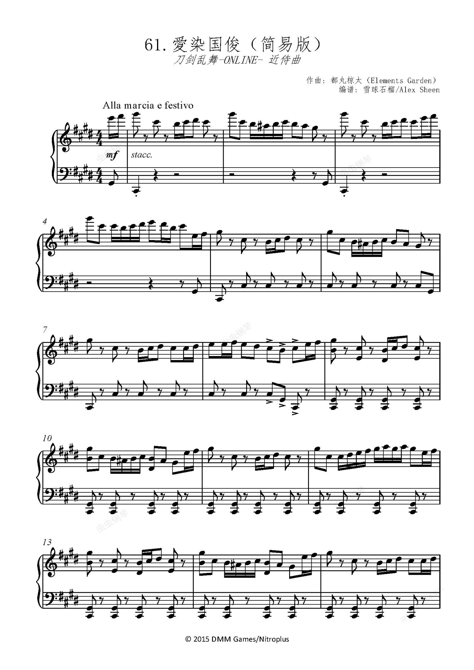 钢琴谱:愛染国俊 近侍曲【刀剑乱舞】(简易版)